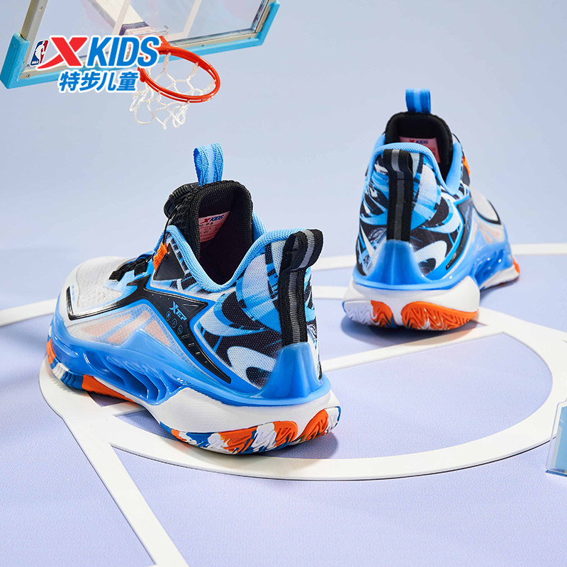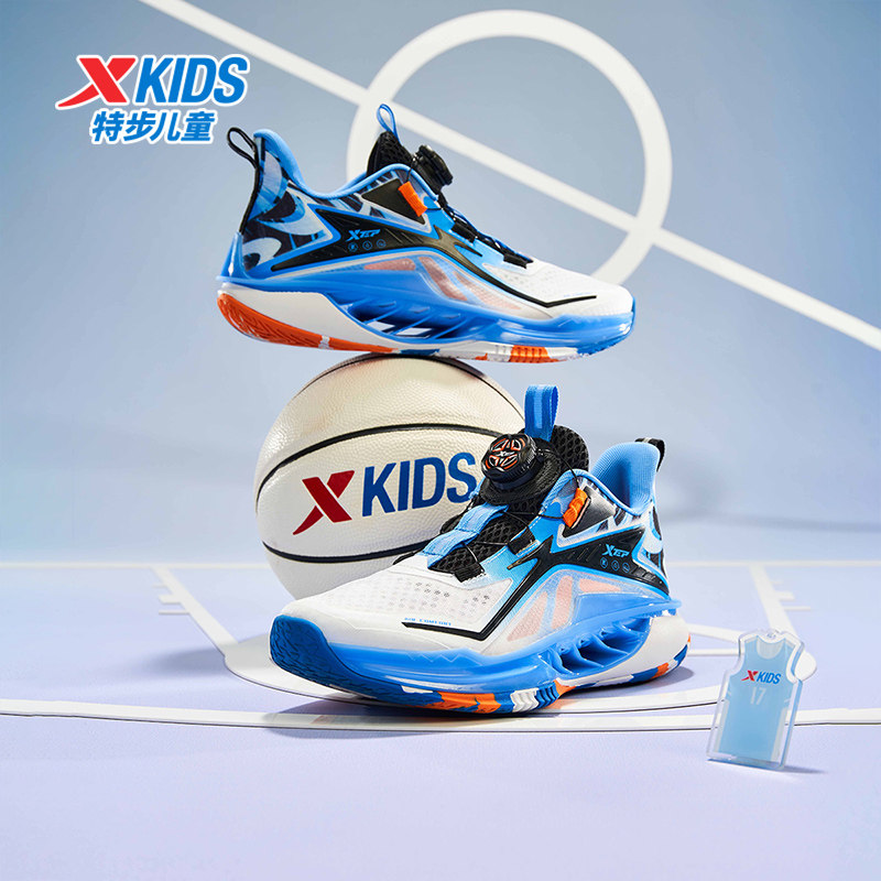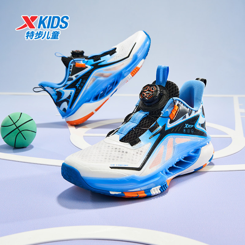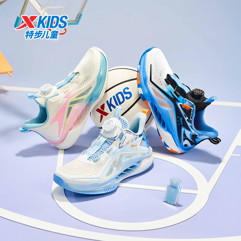 特步童鞋夏季款中大童网面透气儿童运动鞋子男童缓震旋钮扣篮球鞋