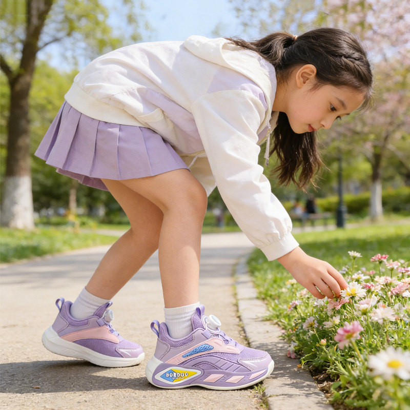 巴布豆女童运动鞋2026新款春季网面透气春款学生女孩跑步儿童鞋子