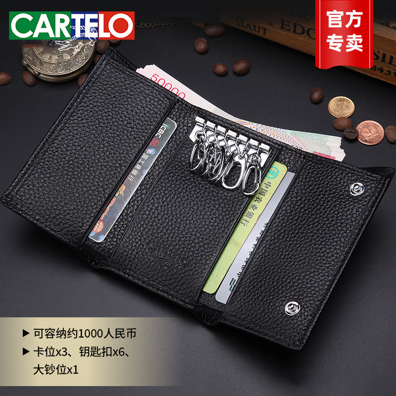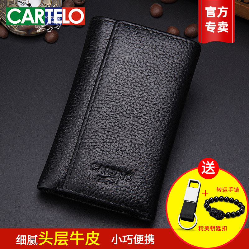 卡帝乐鳄鱼正品钥匙包男士真皮小钱包头层牛皮卡包大容量锁匙扣