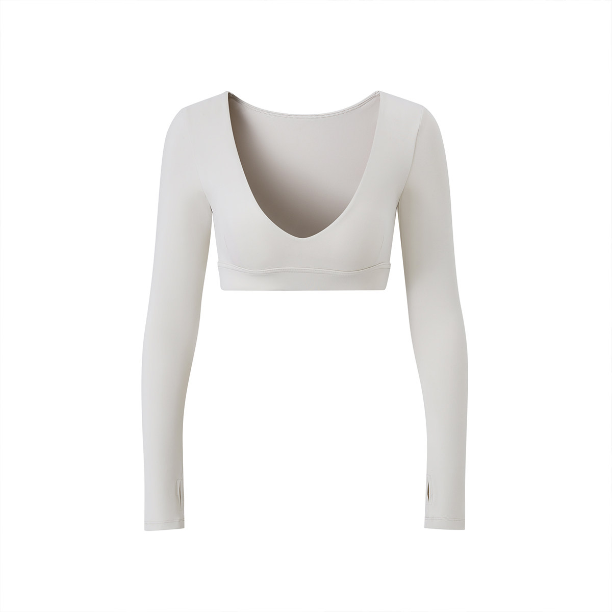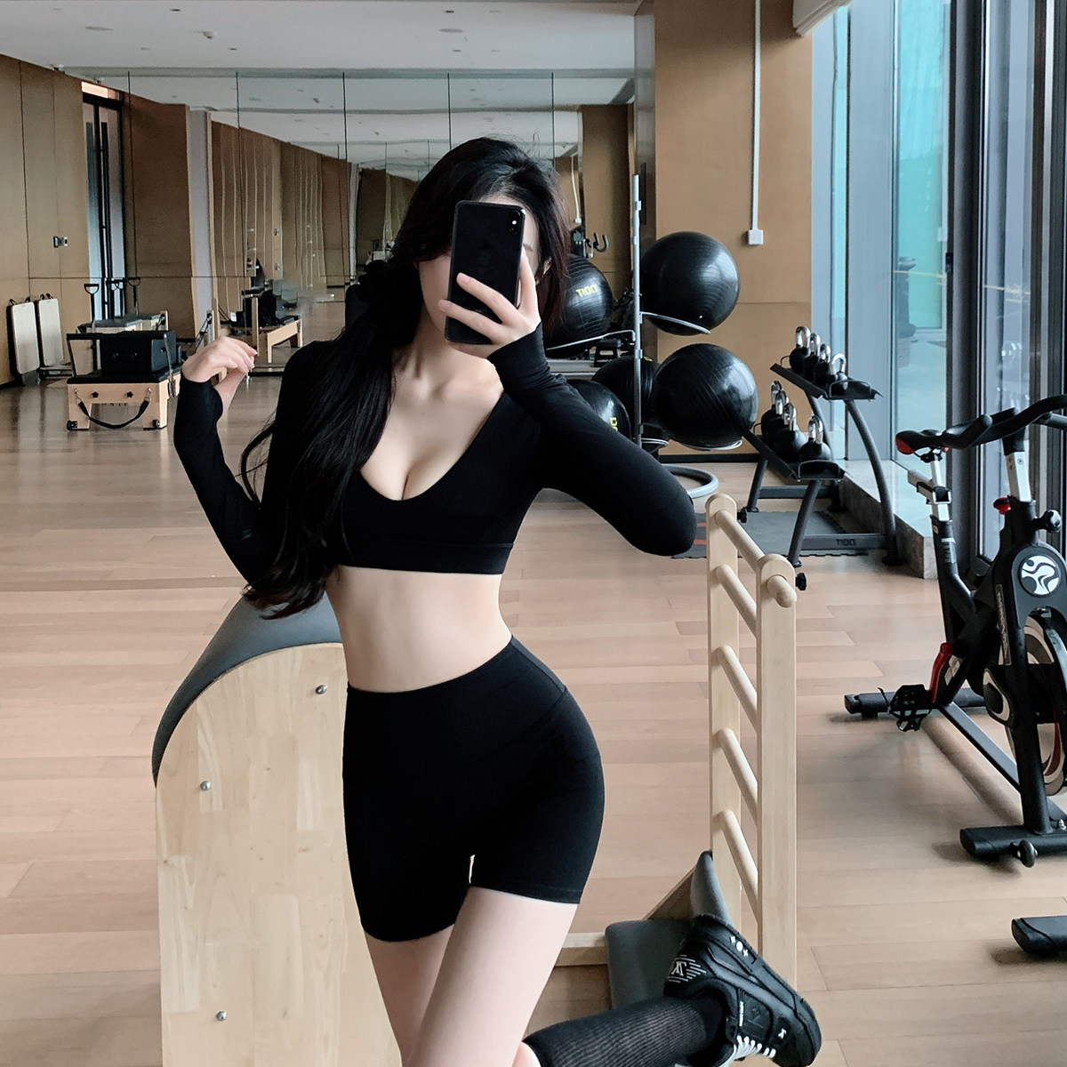 Byurun深V长袖T恤显瘦瑜伽服短上衣普拉提专业运动健身速干训练服