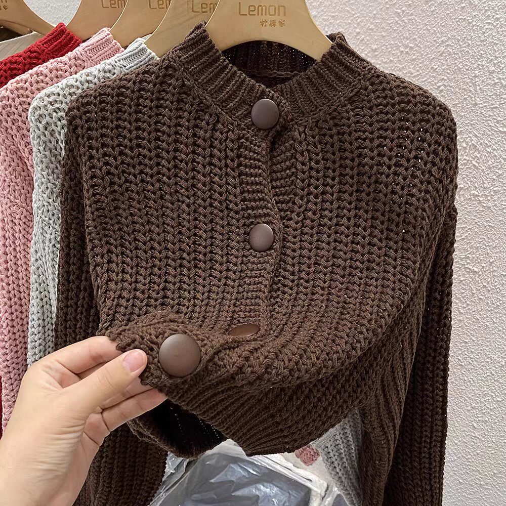 红色短款毛衣开衫外套女秋冬加厚设计感小众高级复古针织长袖上衣