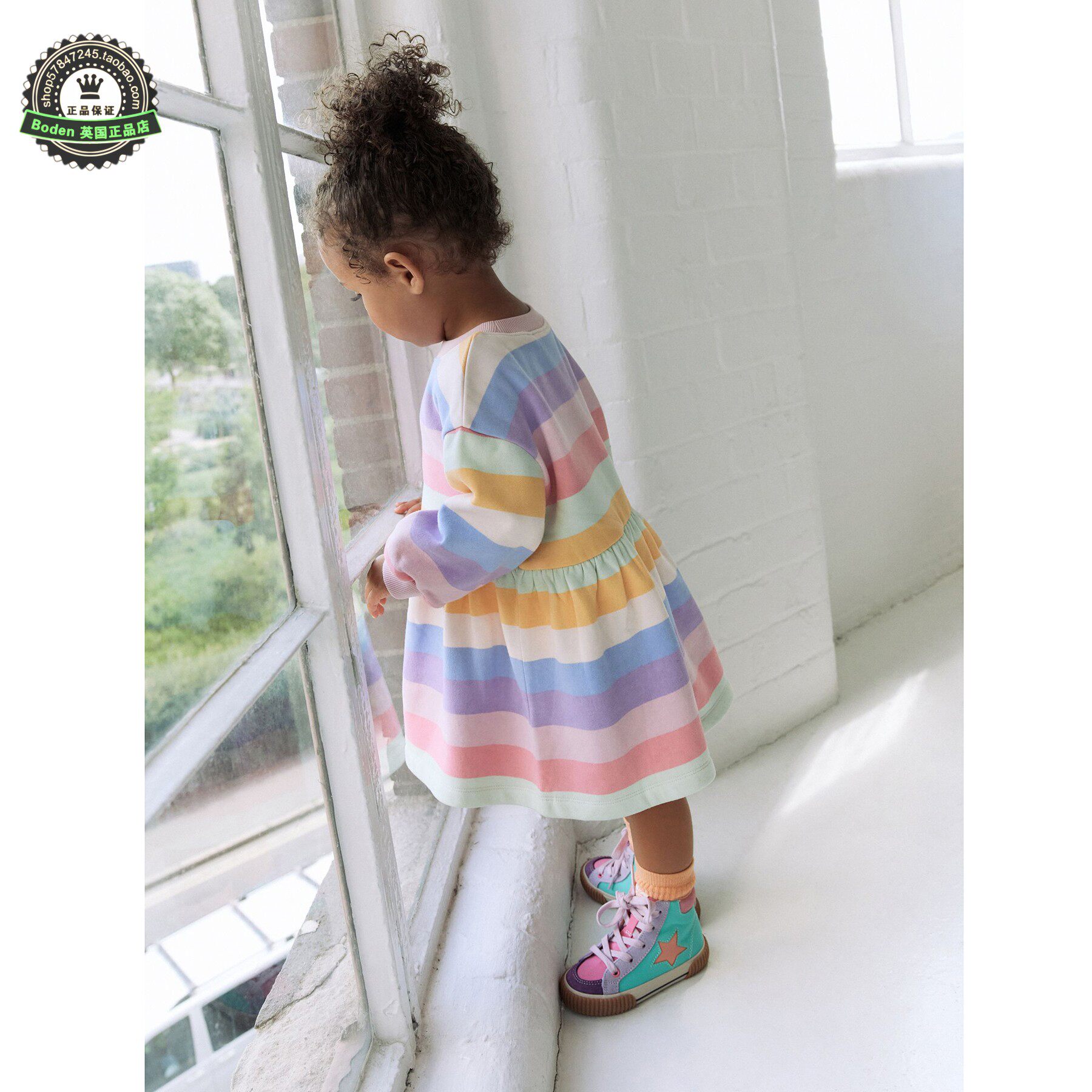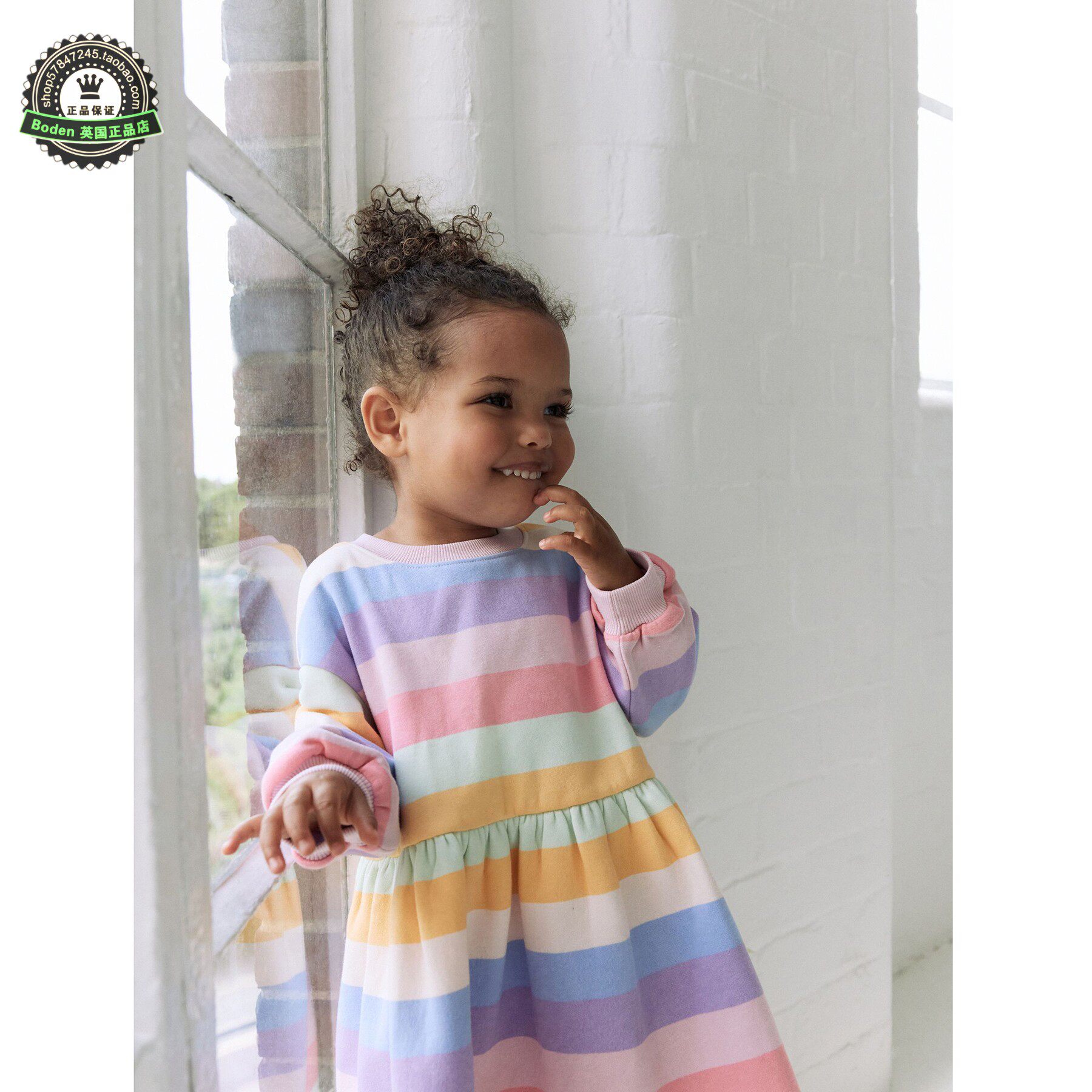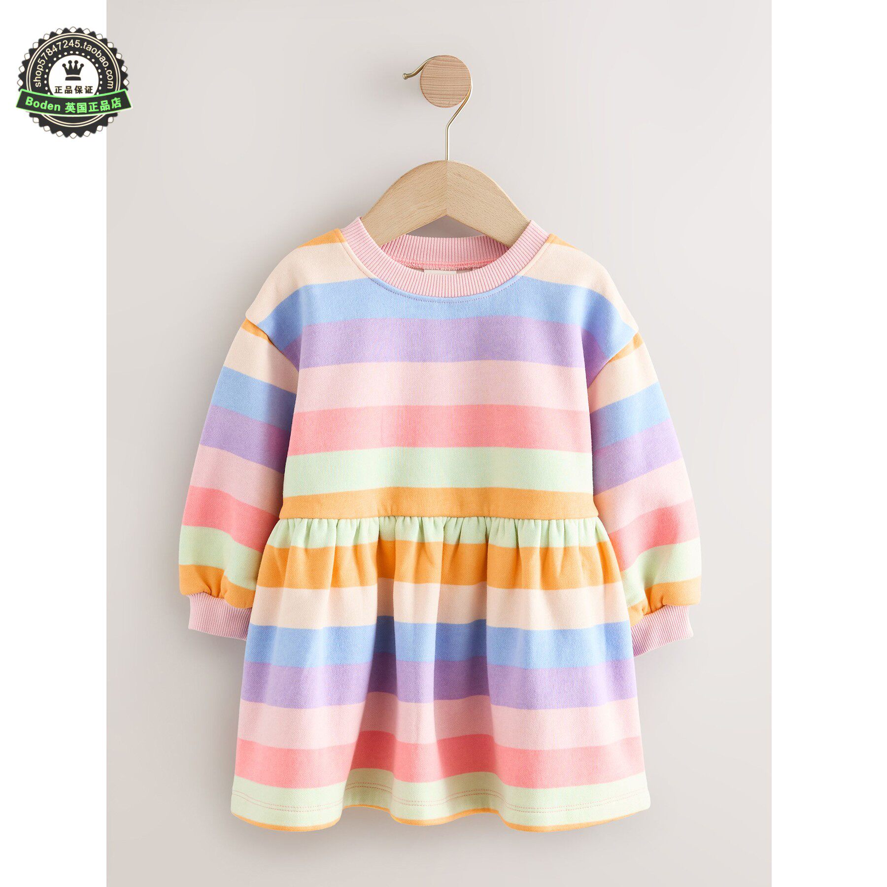 代购 NEXT儿童运动卫衣裙 26春秋季小女童彩虹条纹连衣裙 3月-7岁