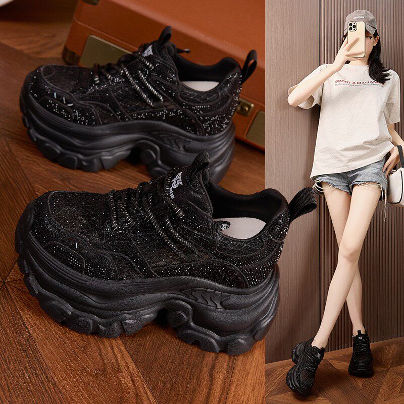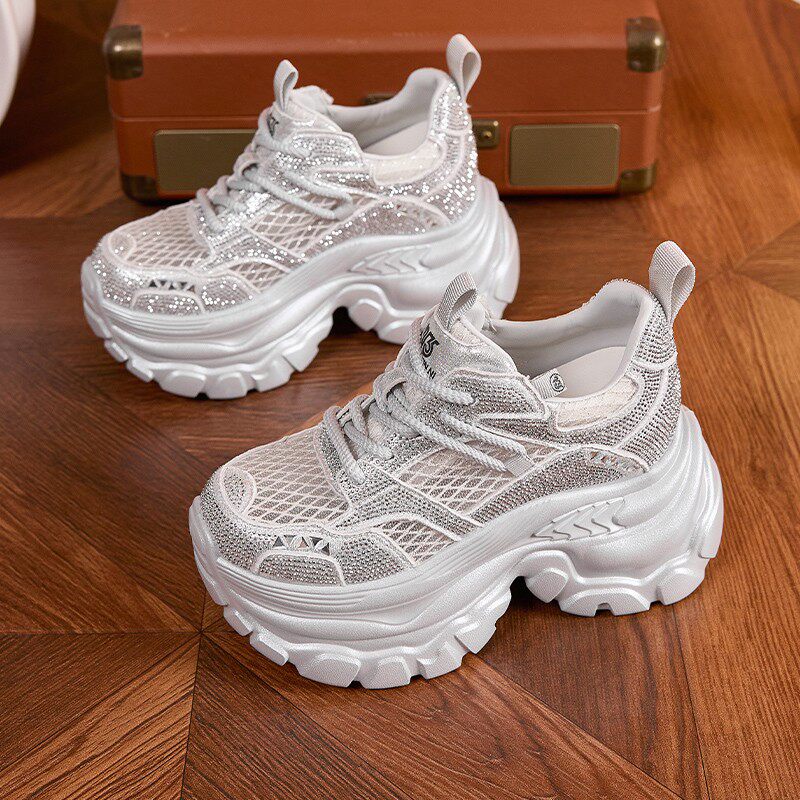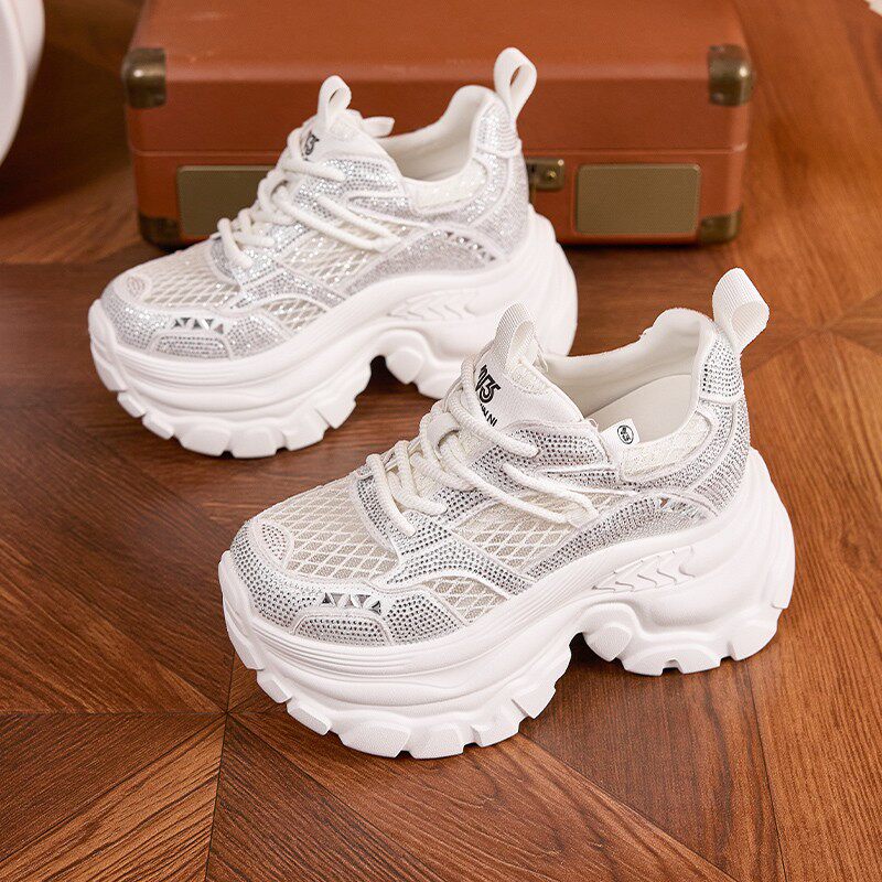 内增高老爹鞋女2025夏季新款网面透气薄款轻便松糕厚底运动休闲鞋