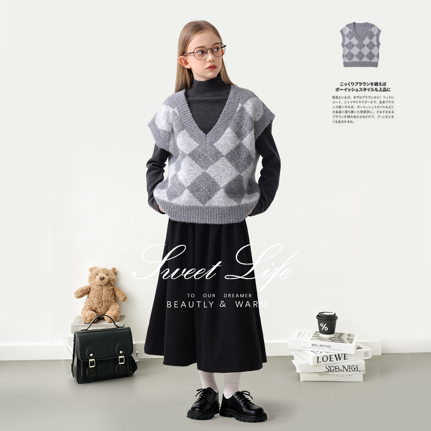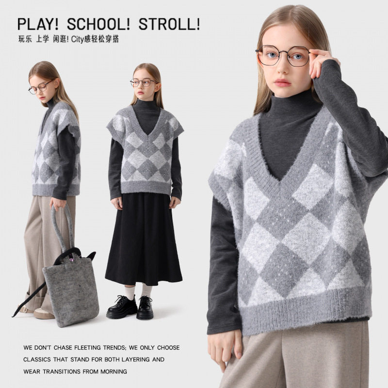 女童针织马甲秋冬新款儿童毛衣大童背心外套青少年上衣女孩童装