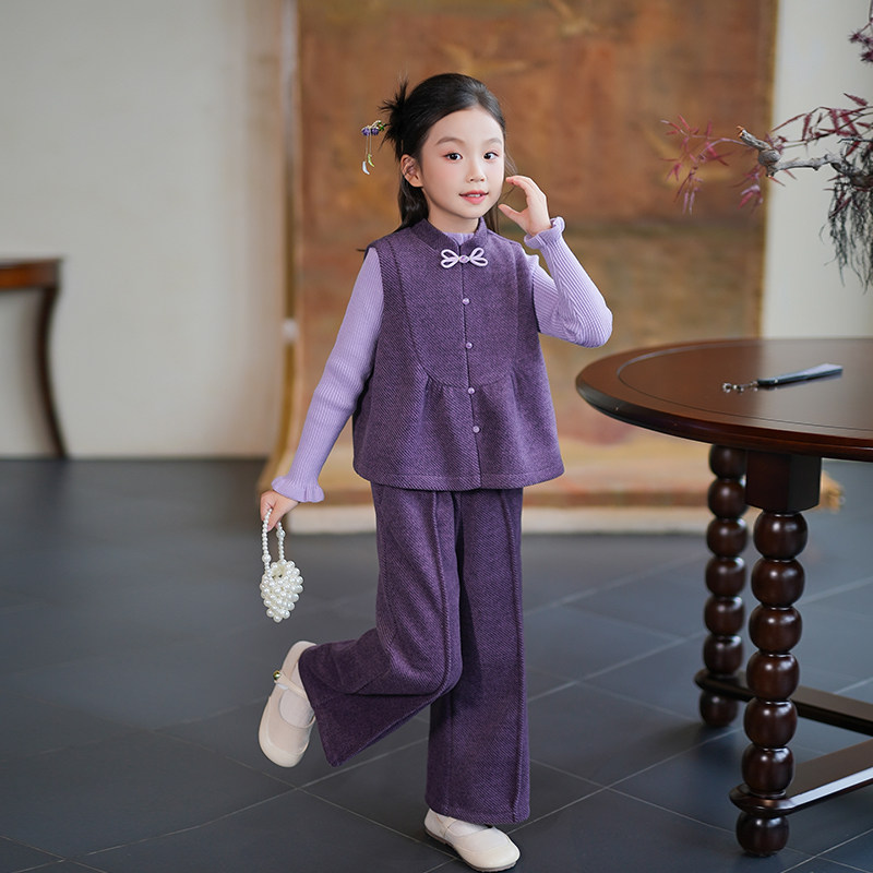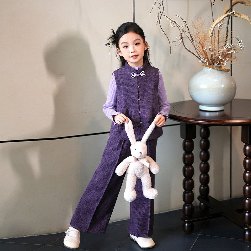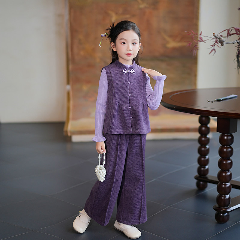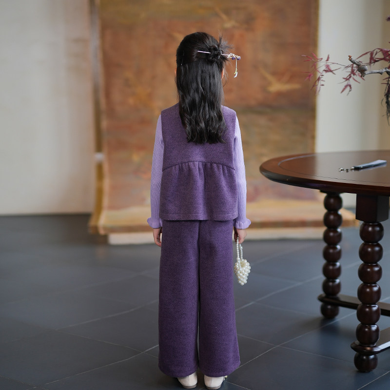 女童秋冬套装2026新款新中式国风女宝宝马甲毛衣洋气儿童两件套
