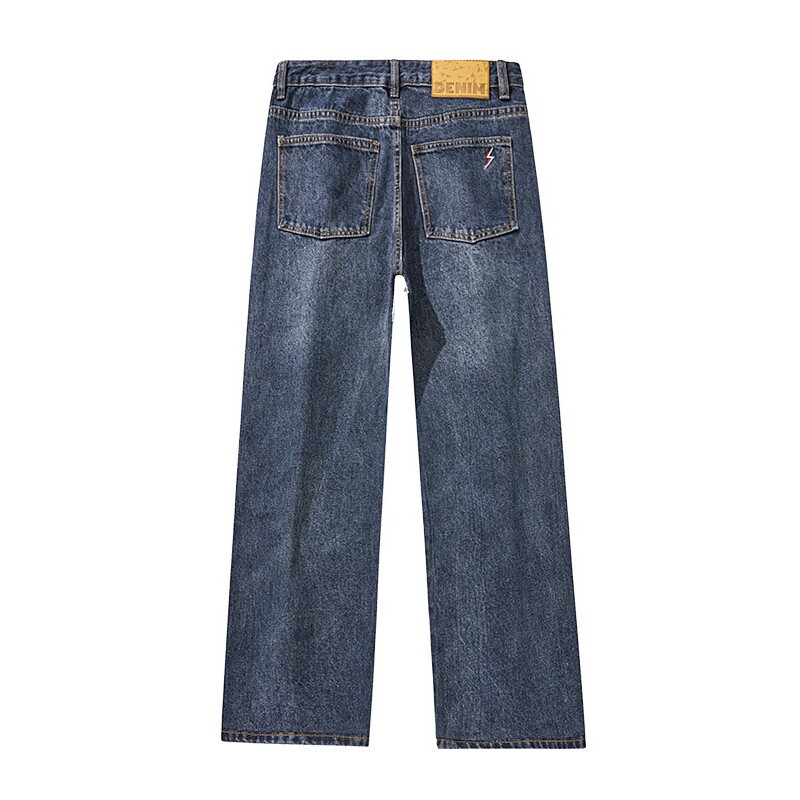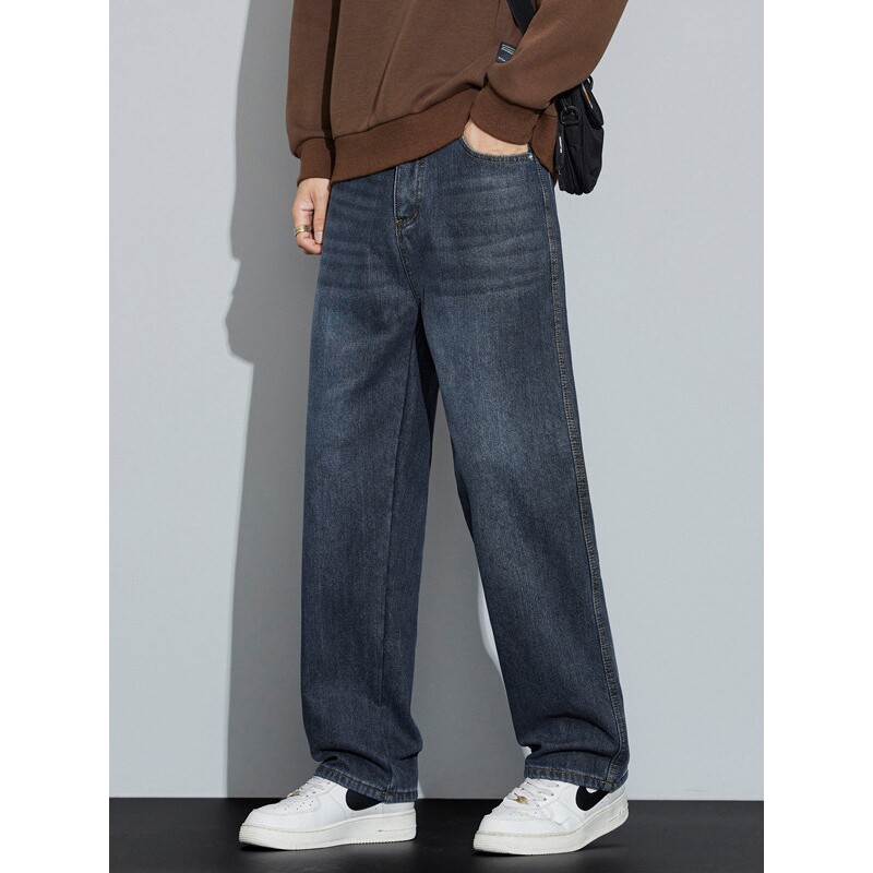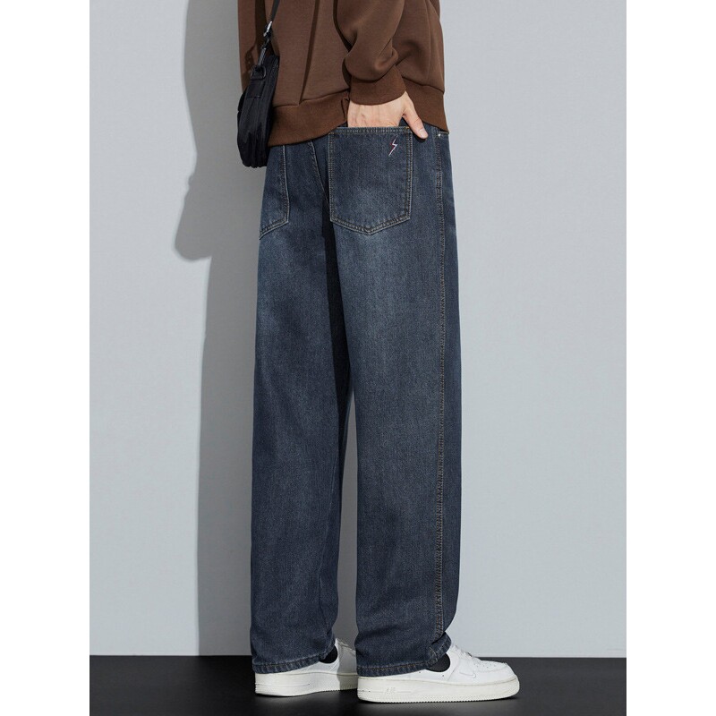 德国美式复古直筒加绒牛仔裤男士季休闲宽松裤子青少年阔腿裤男款