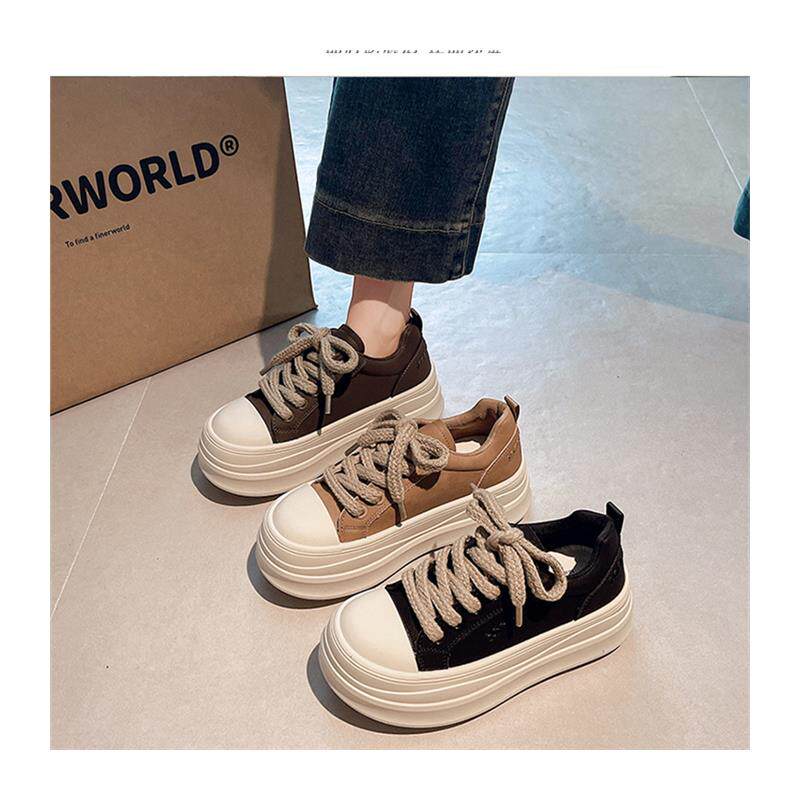 厚底松糕板鞋女2025秋季新款小个子增高女鞋配阔腿裤的鞋子不累脚