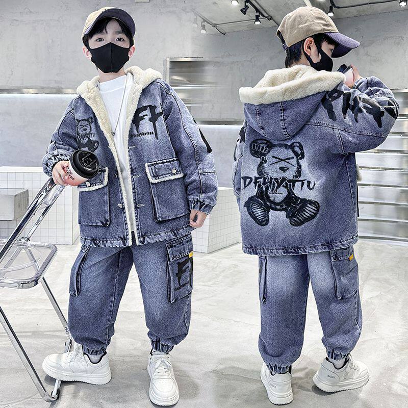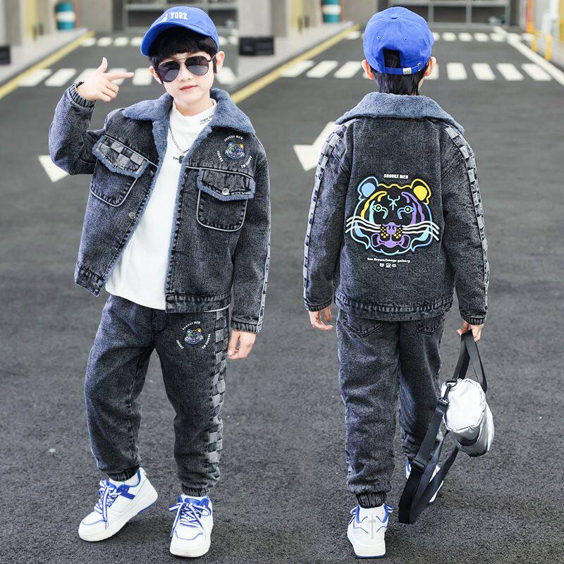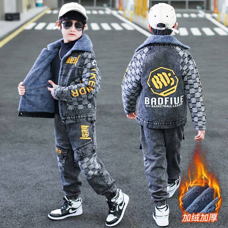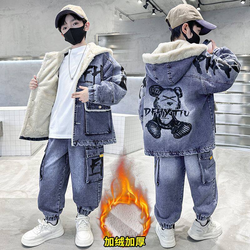 儿童冬装男童加绒套装2025新款中大童加厚洋气潮酷男孩帅气两套