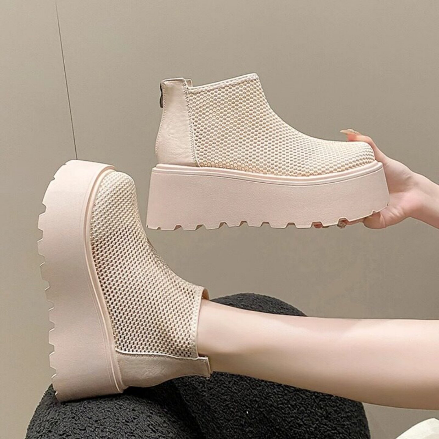 厚底网眼马丁靴女款2026夏季新款增高透气轻便凉靴网靴洞洞凉鞋子