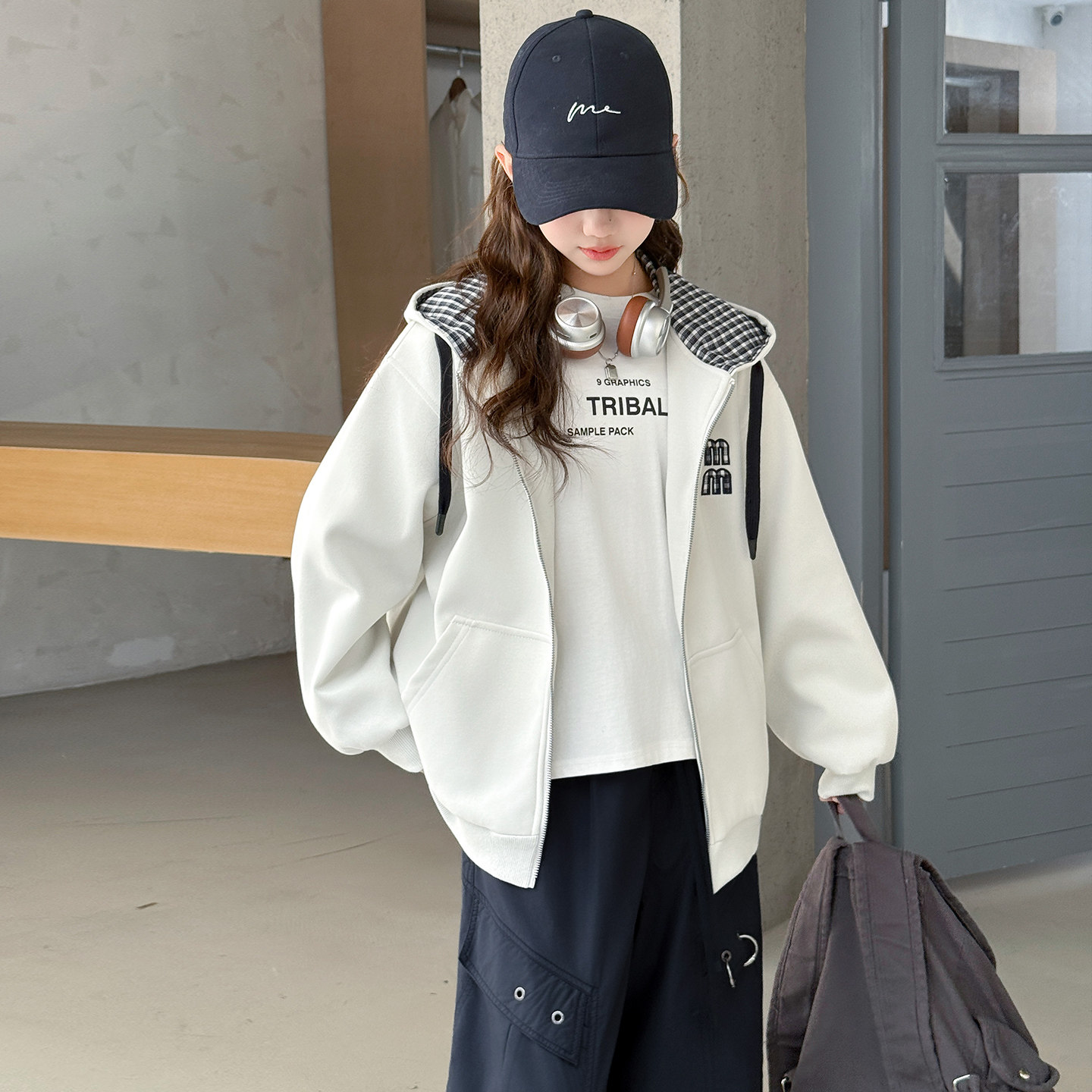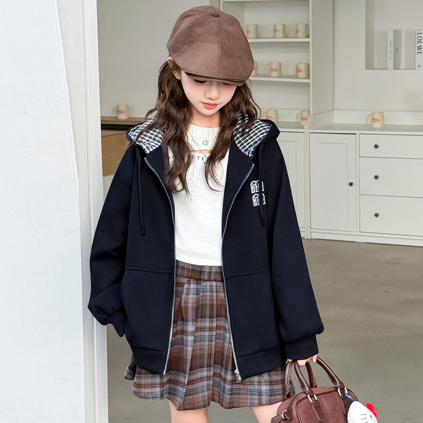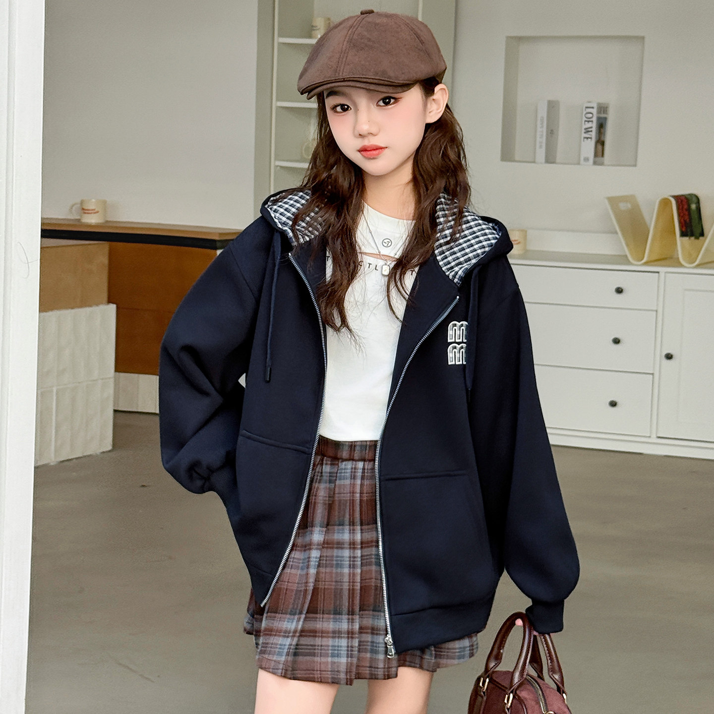 女童外套春秋2026新款洋气中大童连帽卫衣儿童春装运动上衣初中生