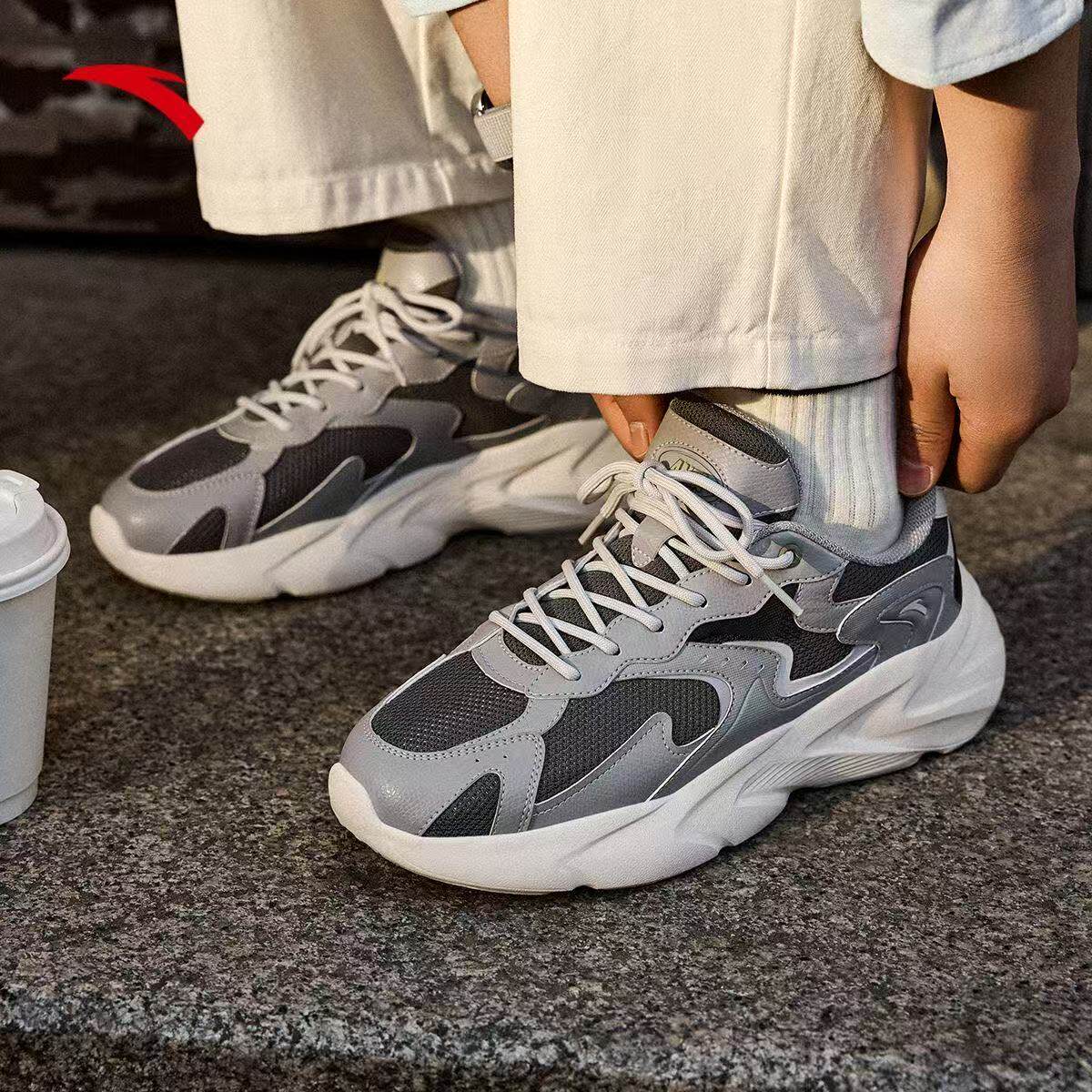 安踏网面透气男鞋运动鞋2025夏季密网男士休闲跑步厚底休老爹鞋子