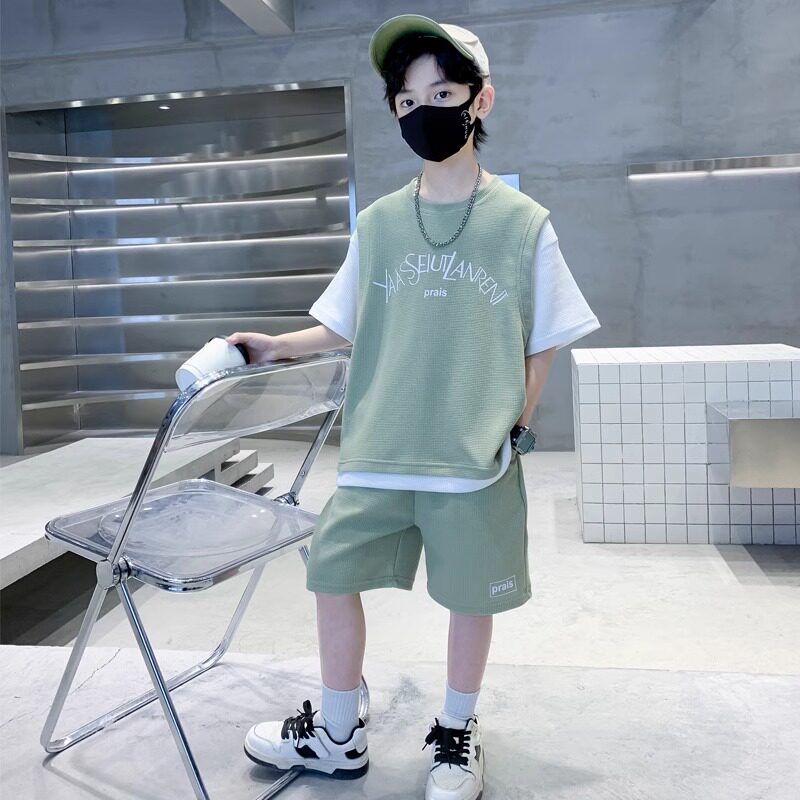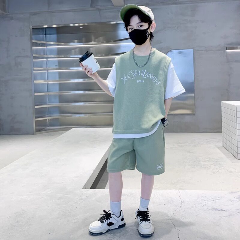男童夏季套装2025薄款新款儿童中大休闲短袖两件套男孩帅气时髦潮