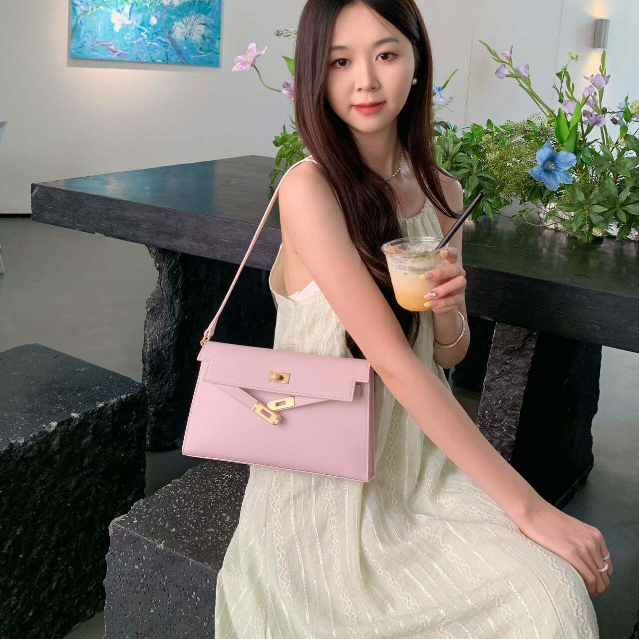山羊纹包包女腋下包高级感百搭长款零钱包真皮牛皮单肩斜跨法棍包