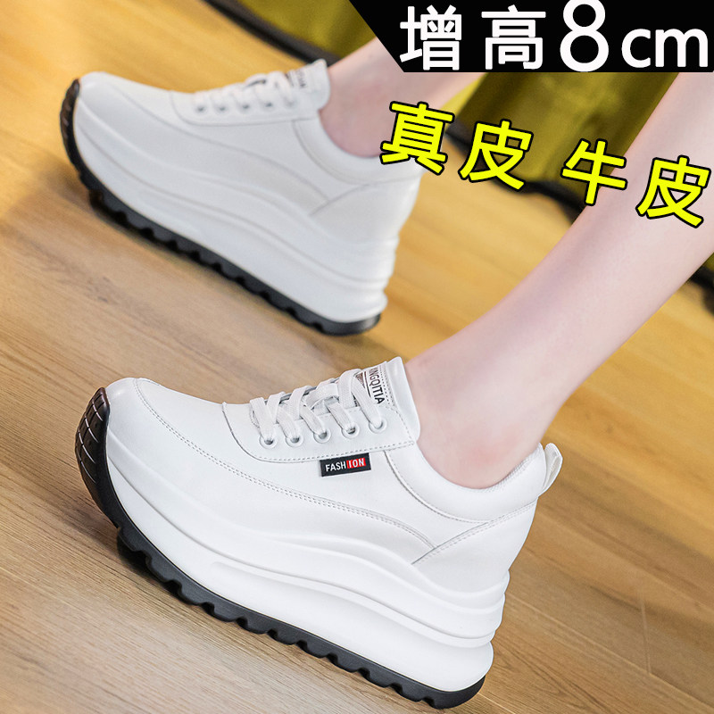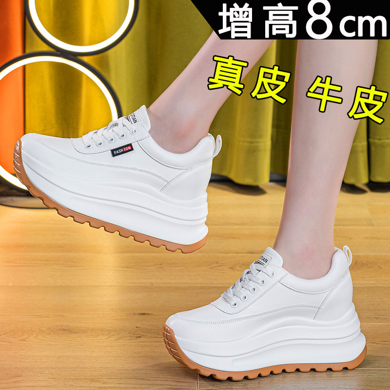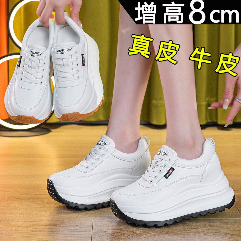 真皮内增高小白鞋女2025秋新款爆款小个子8cm厚底百搭休闲运动鞋
