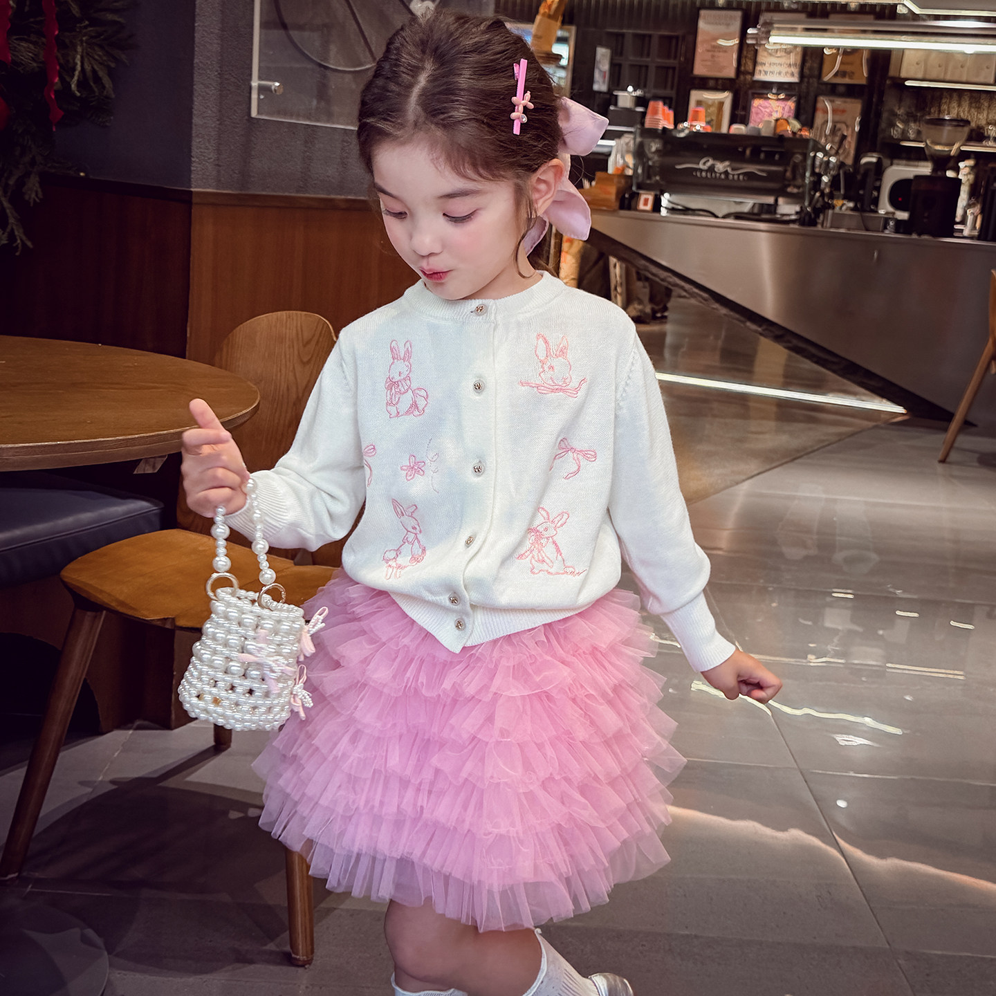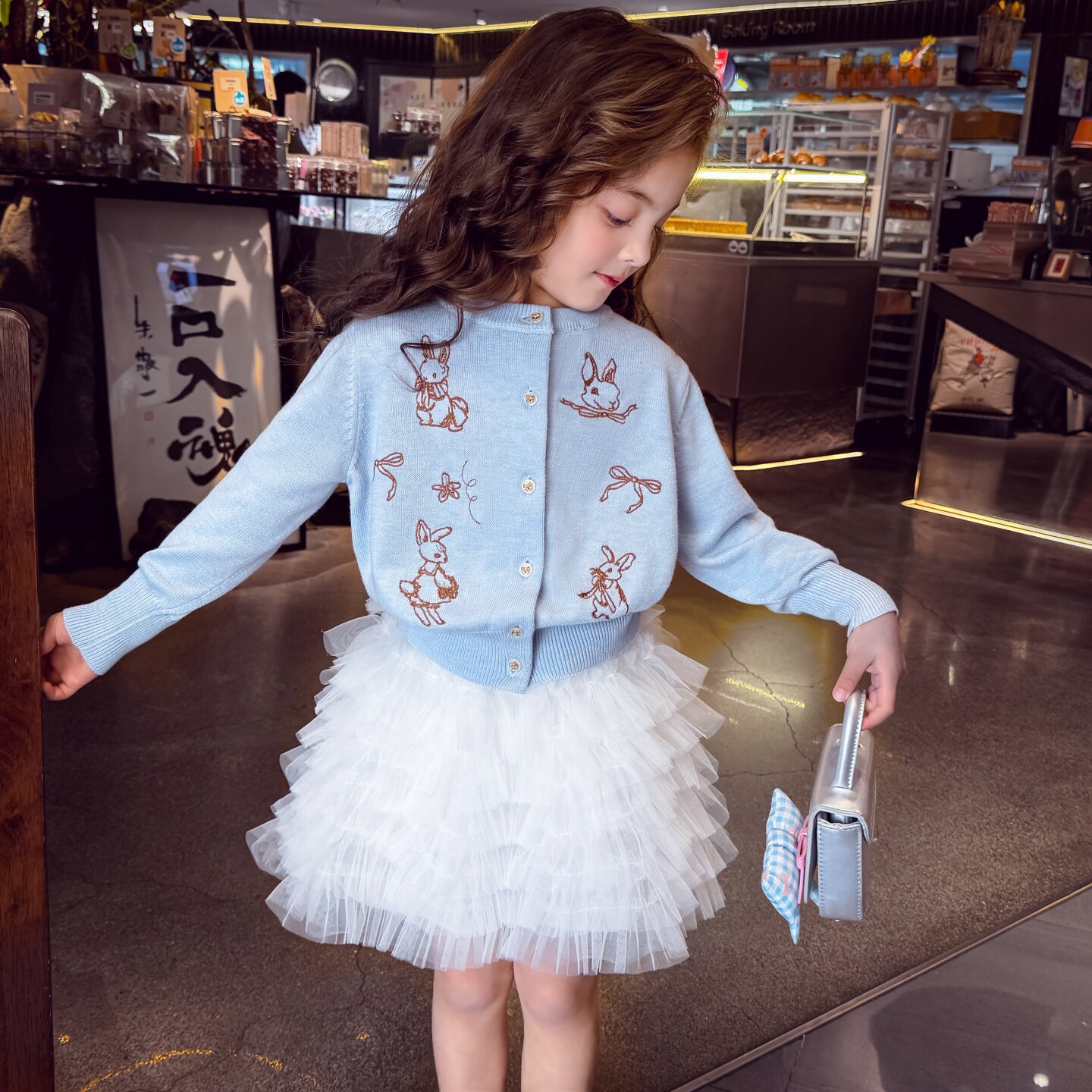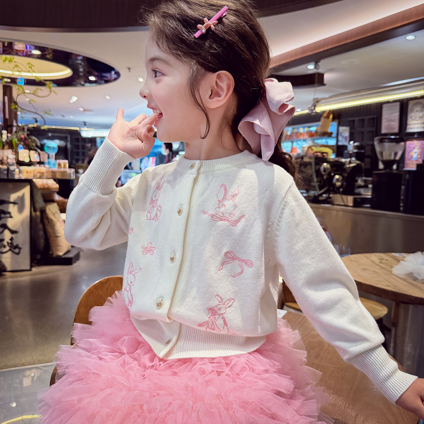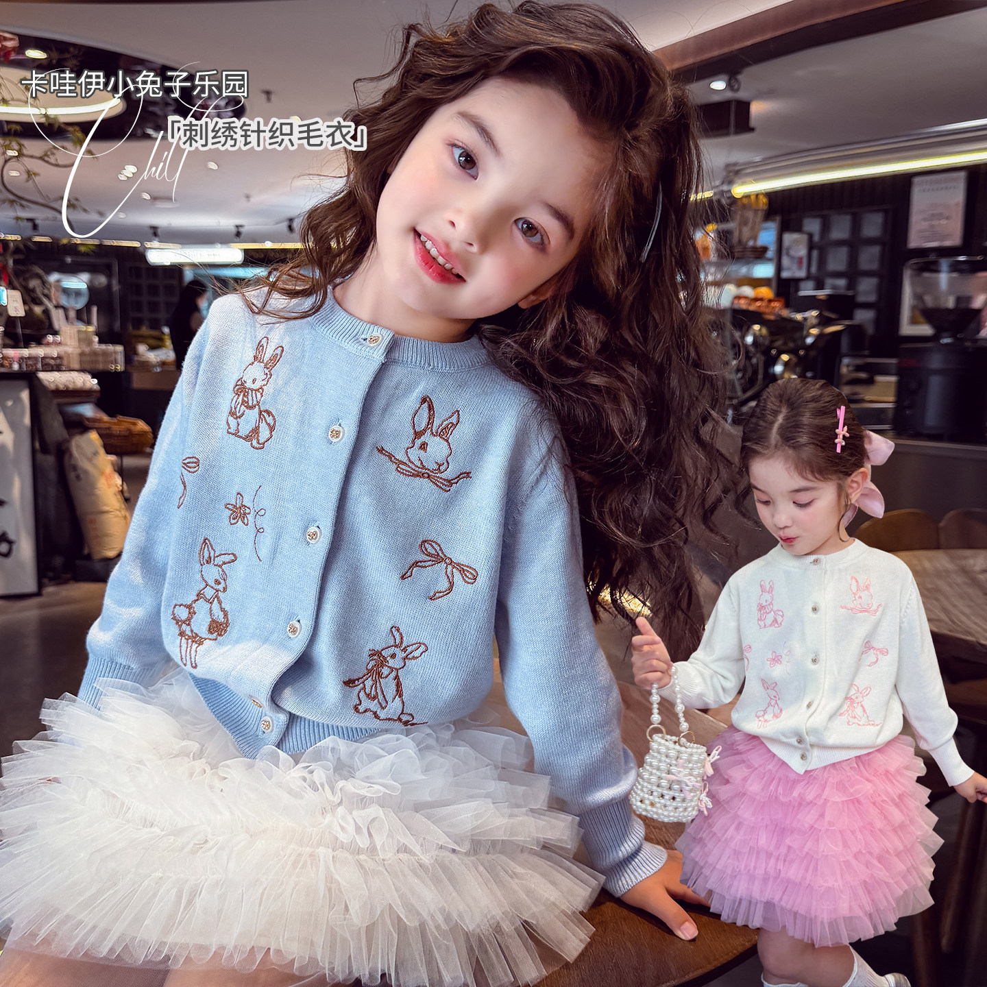米米哈罗女童针织开衫春装2026新款洋气儿童薄款毛衣外套女孩上衣