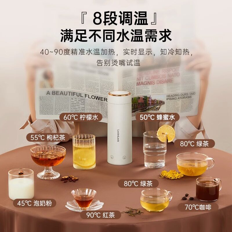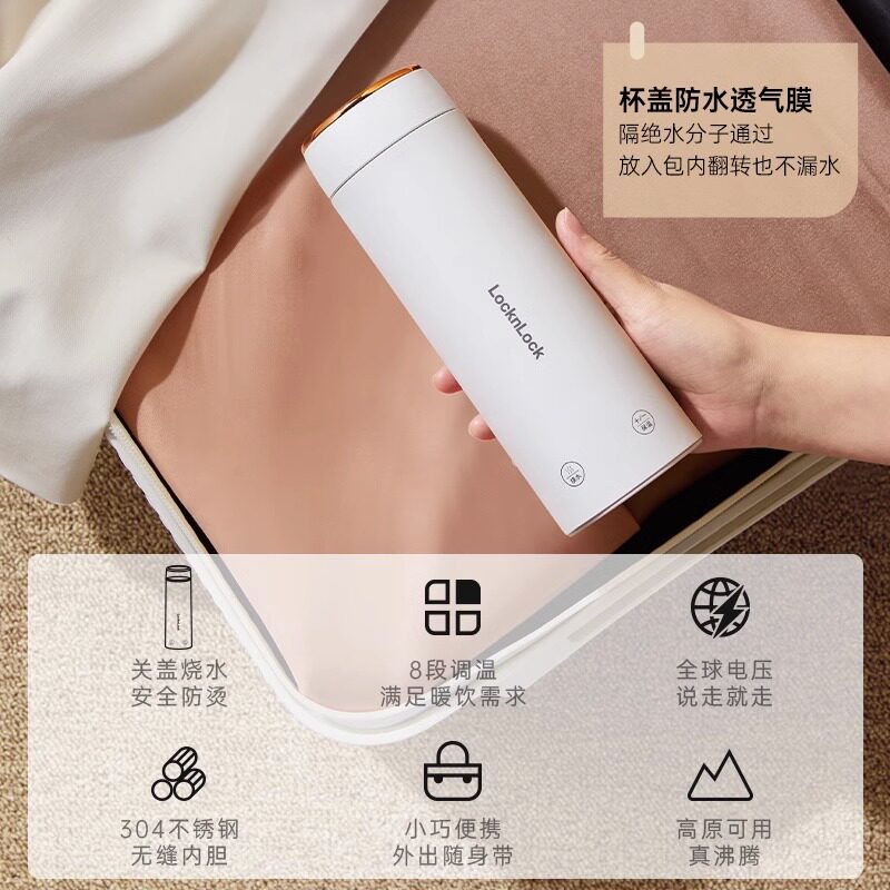 乐扣便携式烧水壶小型旅行烧水杯宿舍全自动加热杯家用保温热水壶