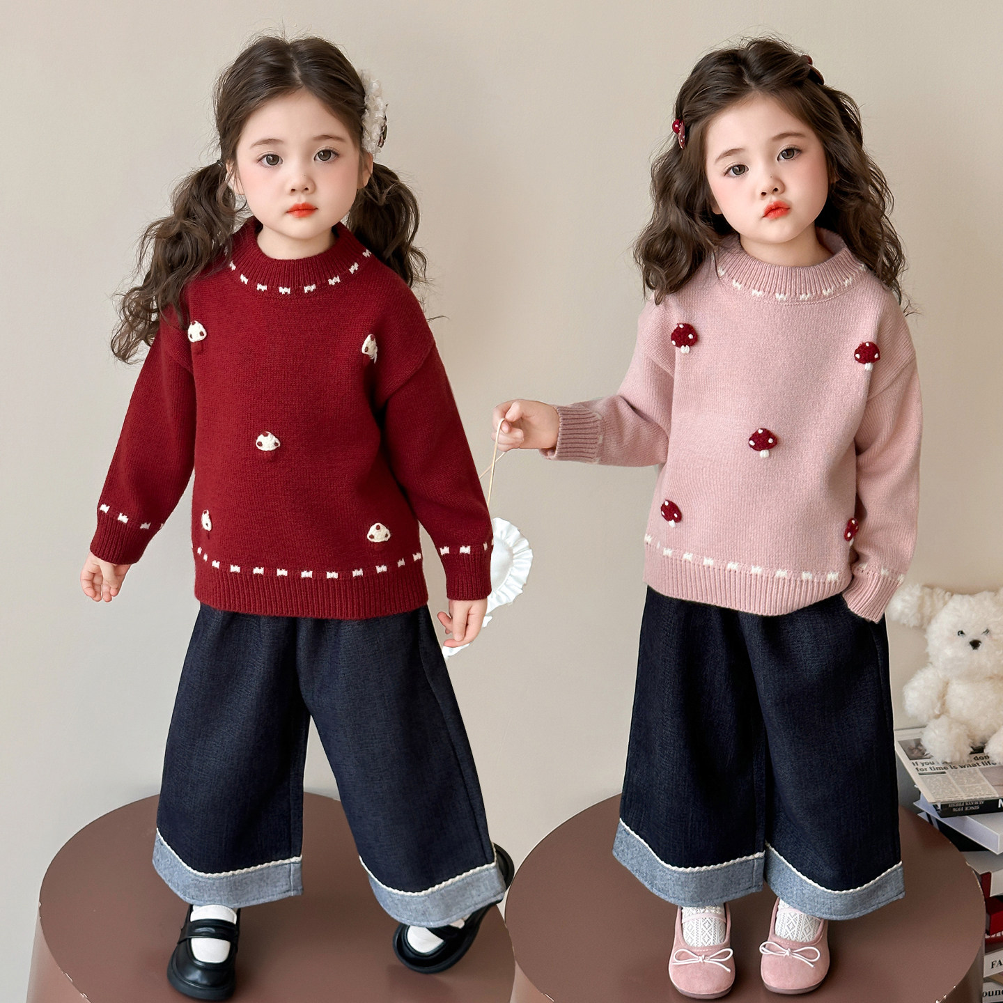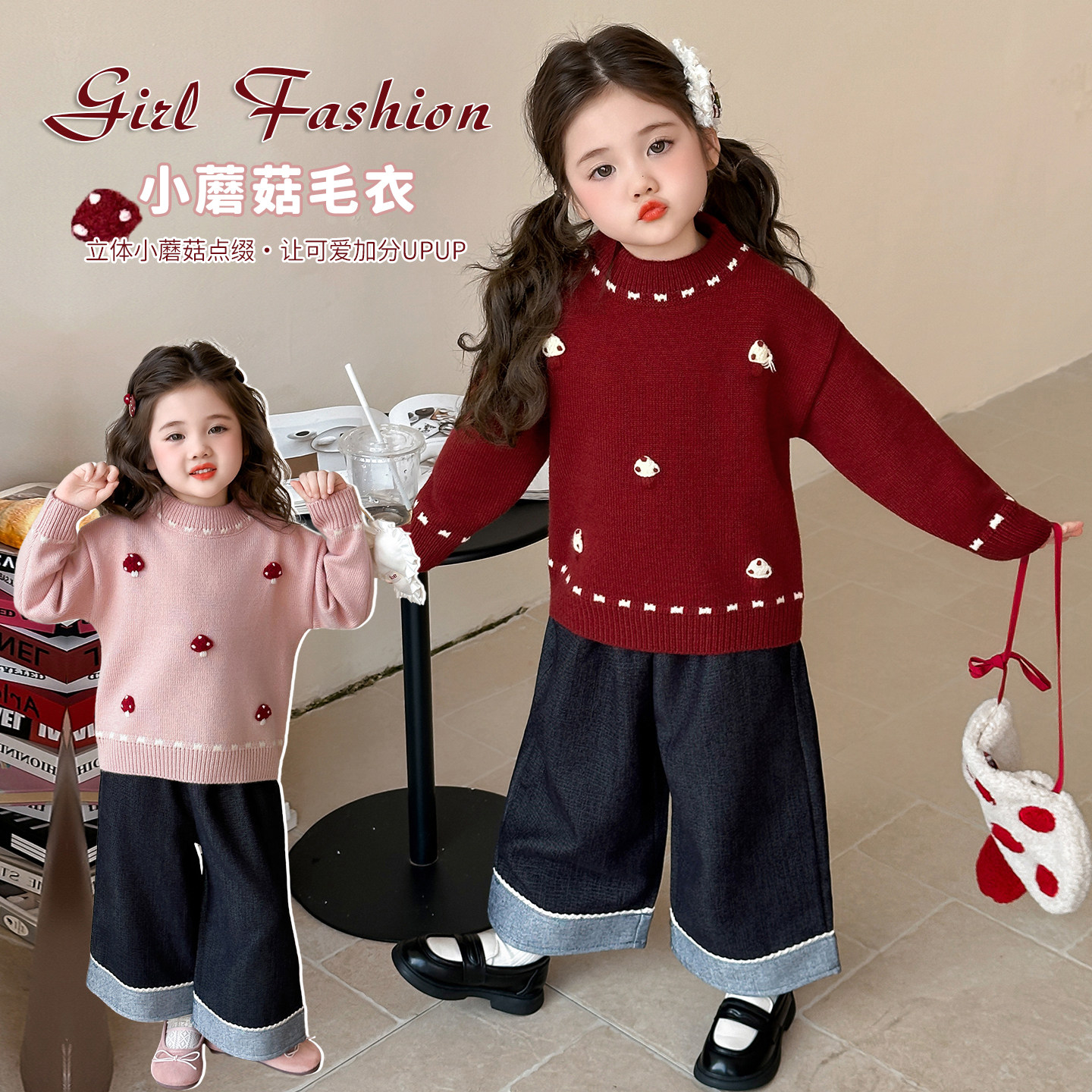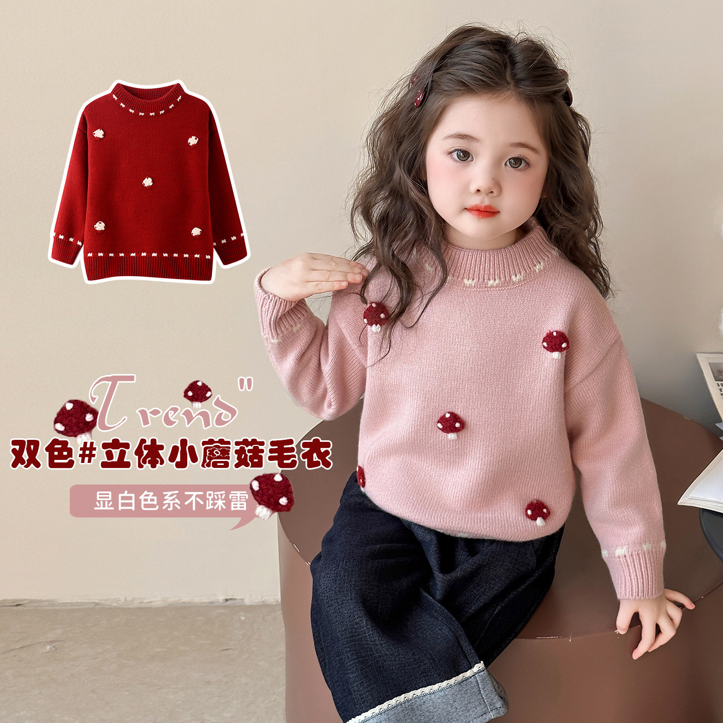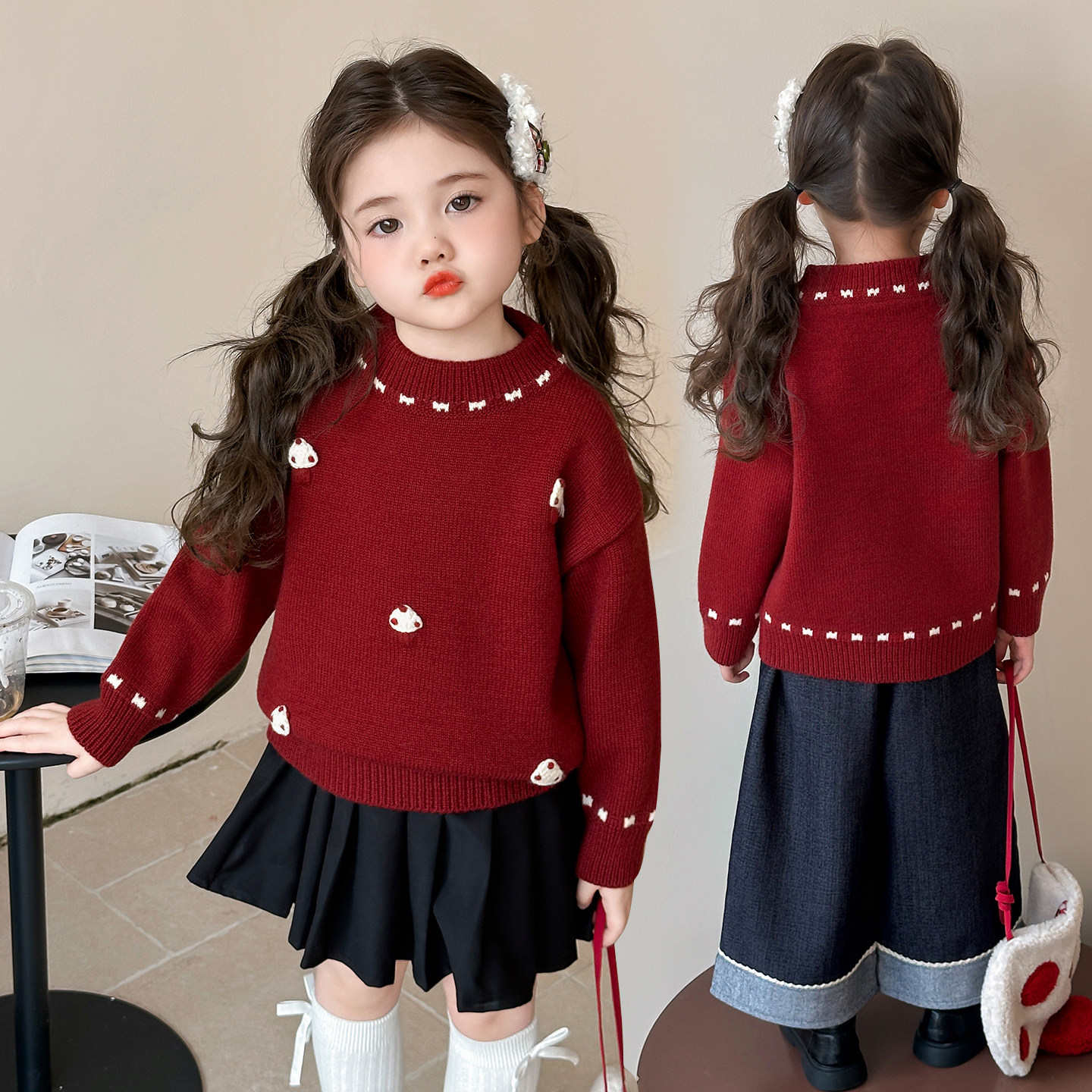 女童毛衣2025冬装新款女宝加厚宝宝冬季女款毛线衣红色儿童内搭