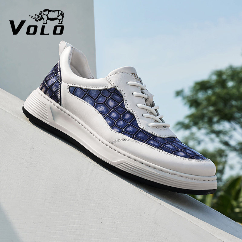 VOLO/犀牛鞋子男款百搭增高春季男士小白鞋休闲板鞋真皮软底男鞋