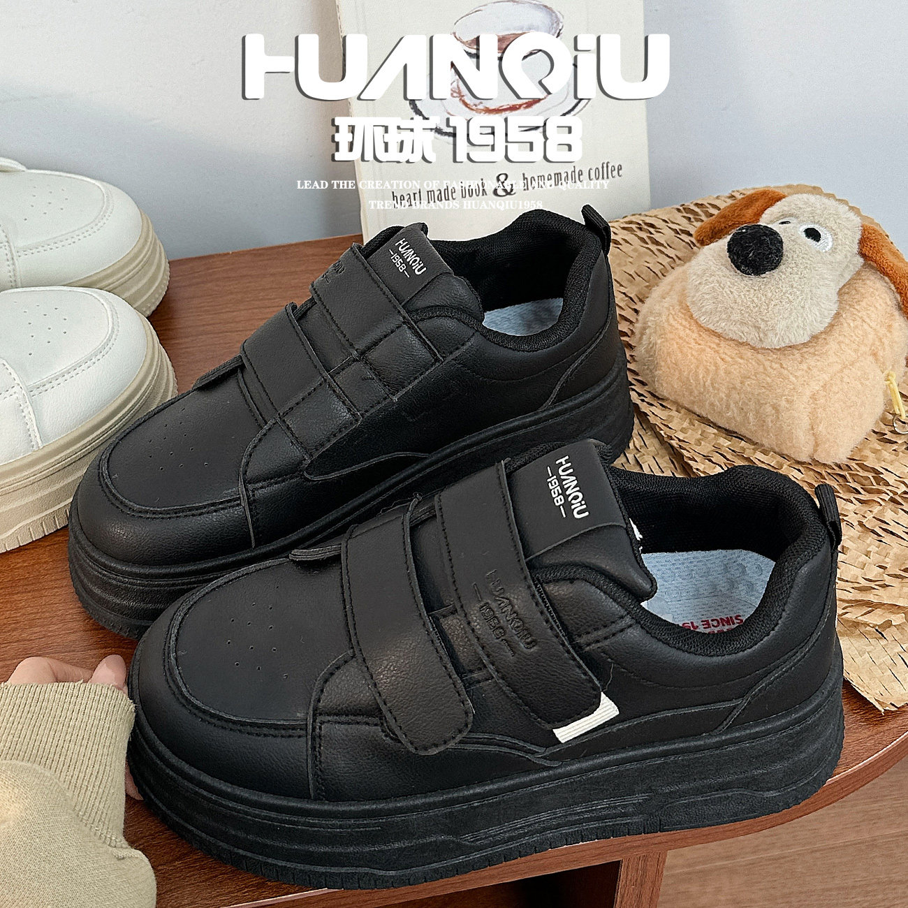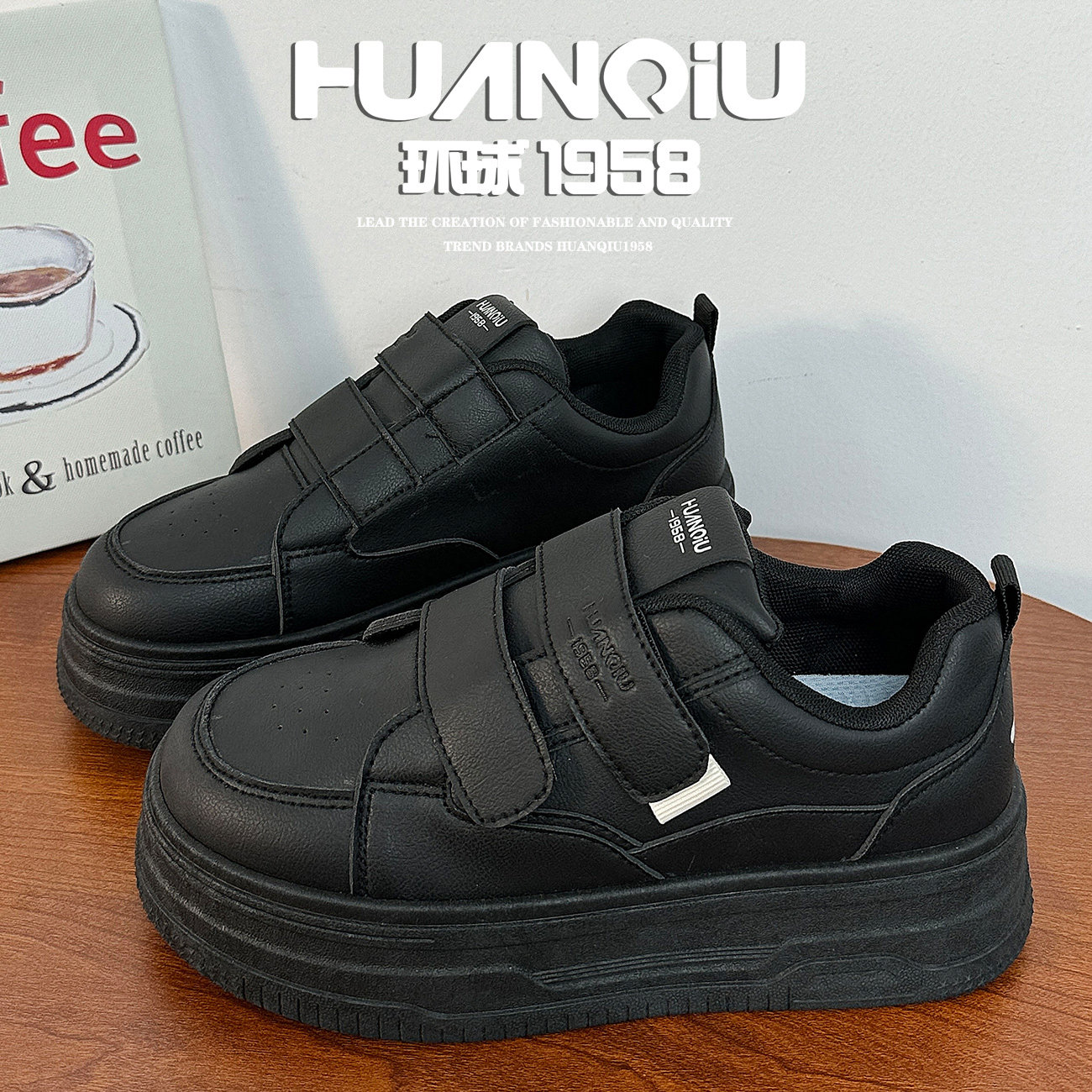 环球2026年超火黑色魔术贴板鞋女春季新款简约ins潮百搭松糕鞋子