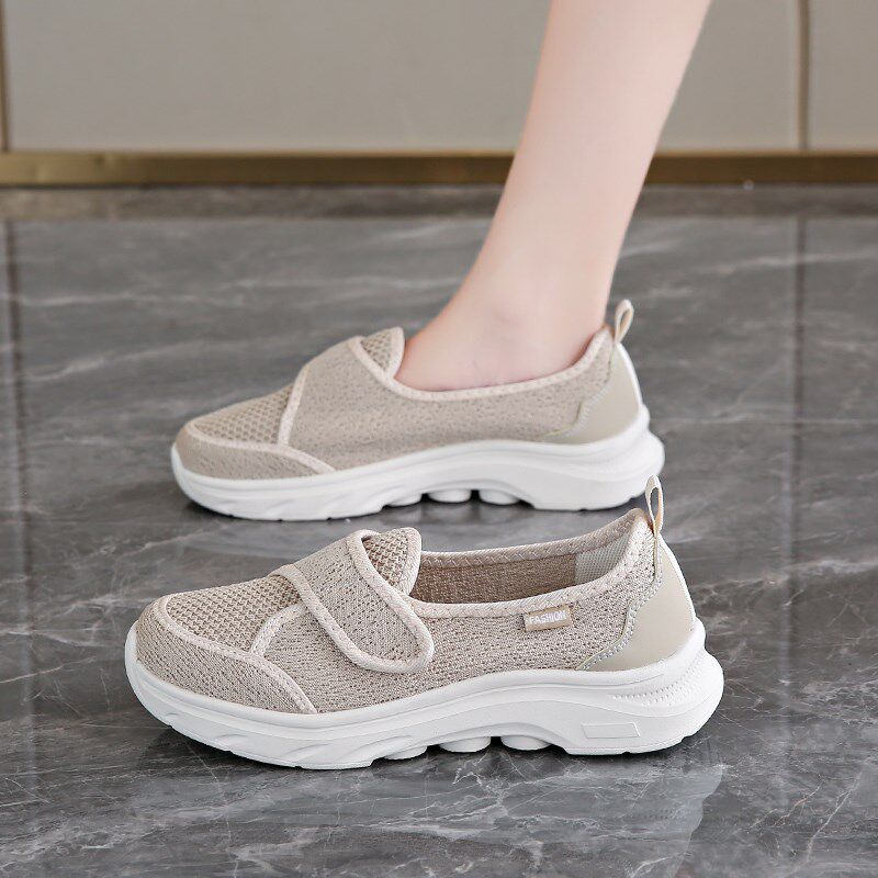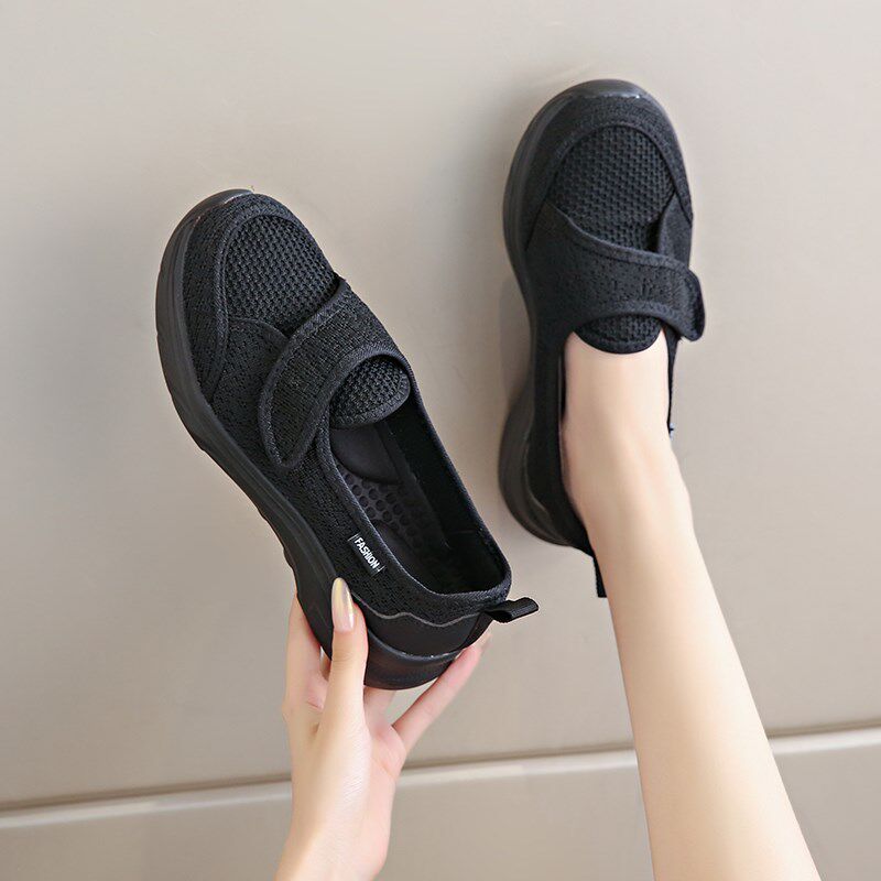 夏季软底黑色运动鞋女防滑2025新款大码魔术贴妈妈鞋透气工作鞋子