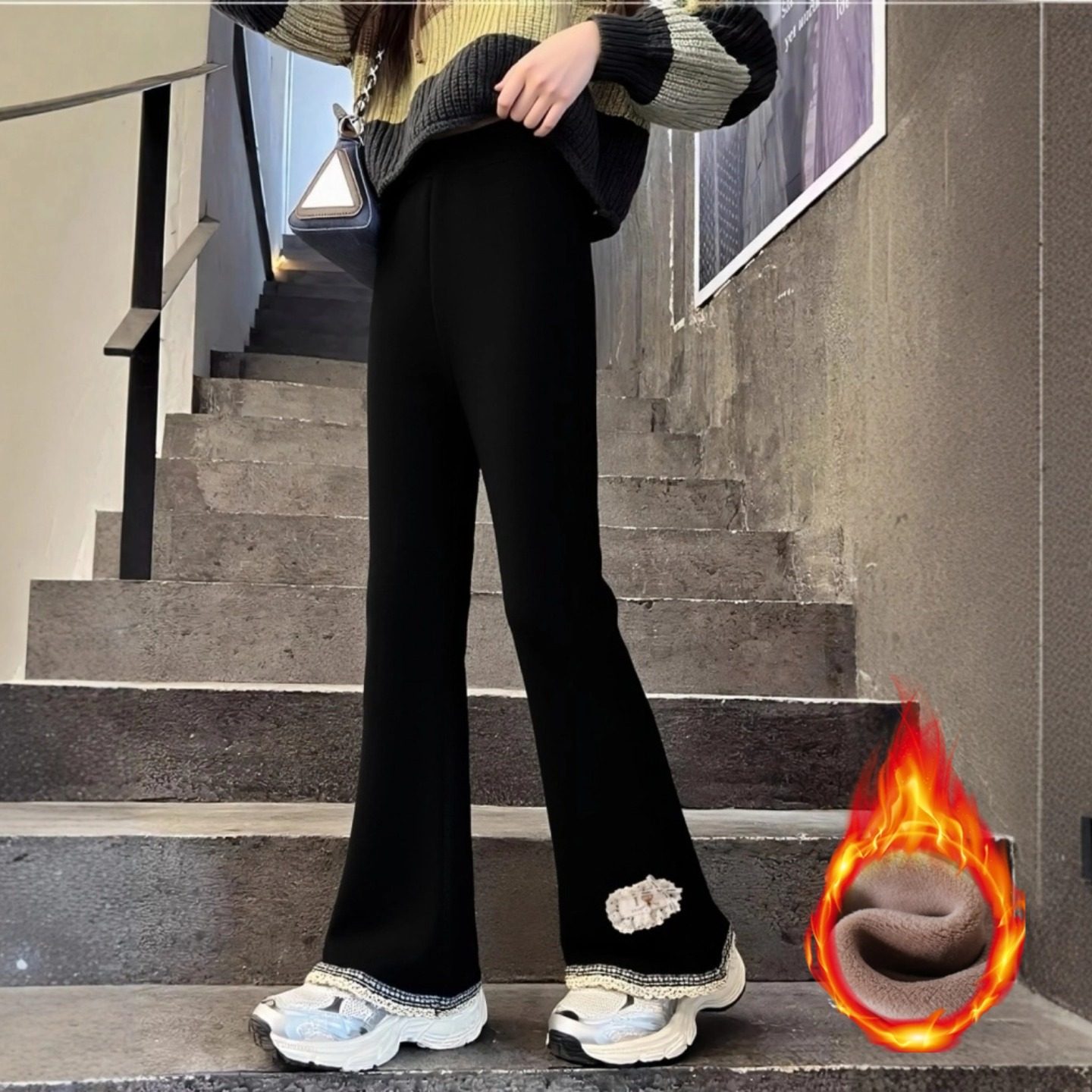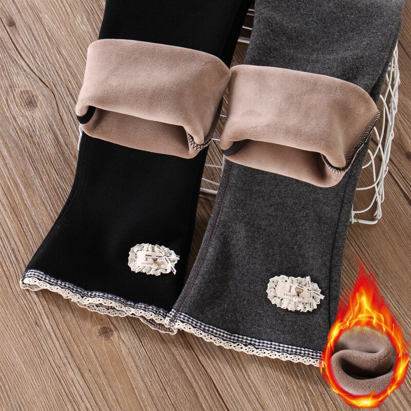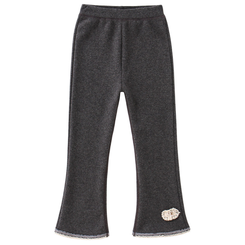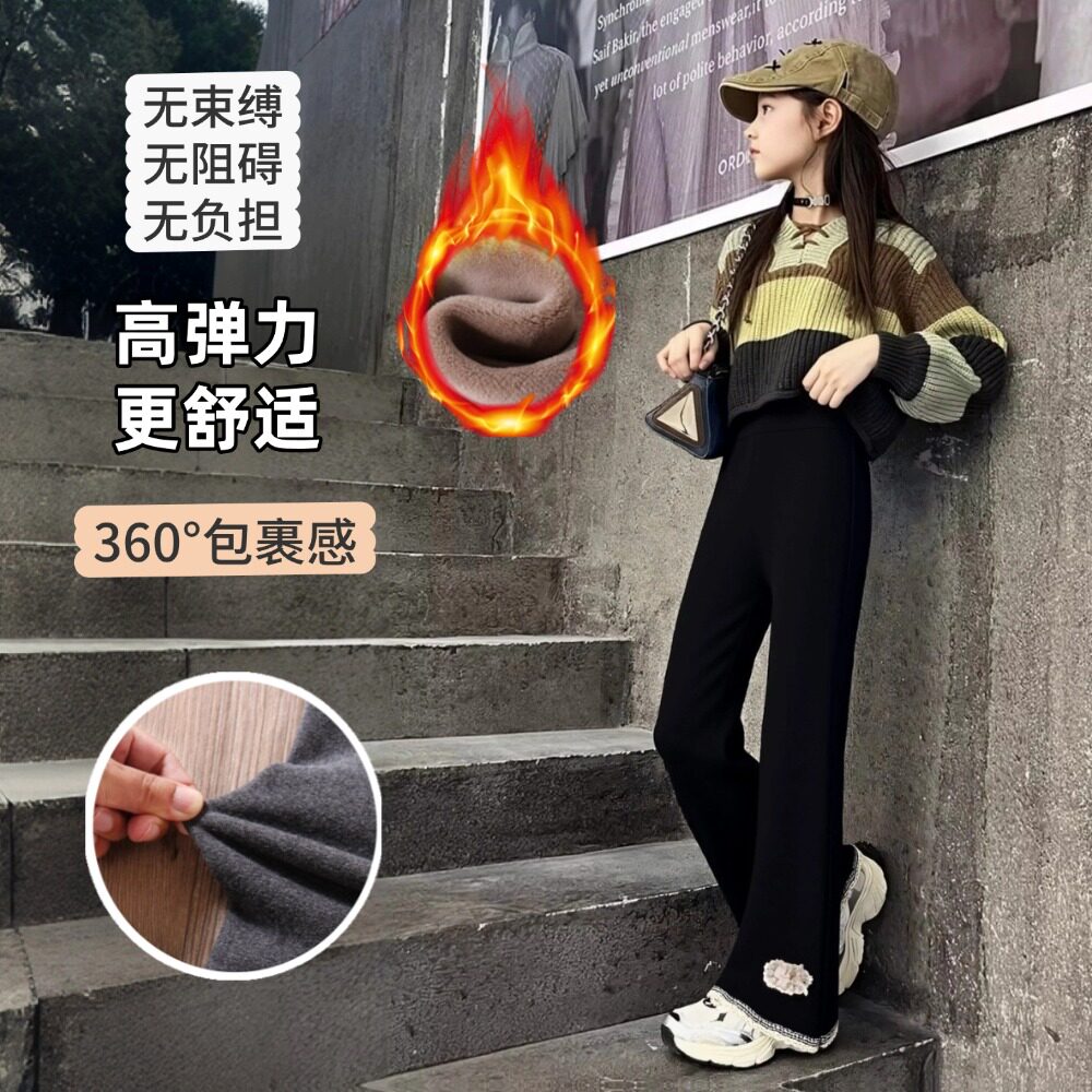 女童加绒裤子2025新款冬季超好看的薄绒修身儿童黑色打底微喇叭裤