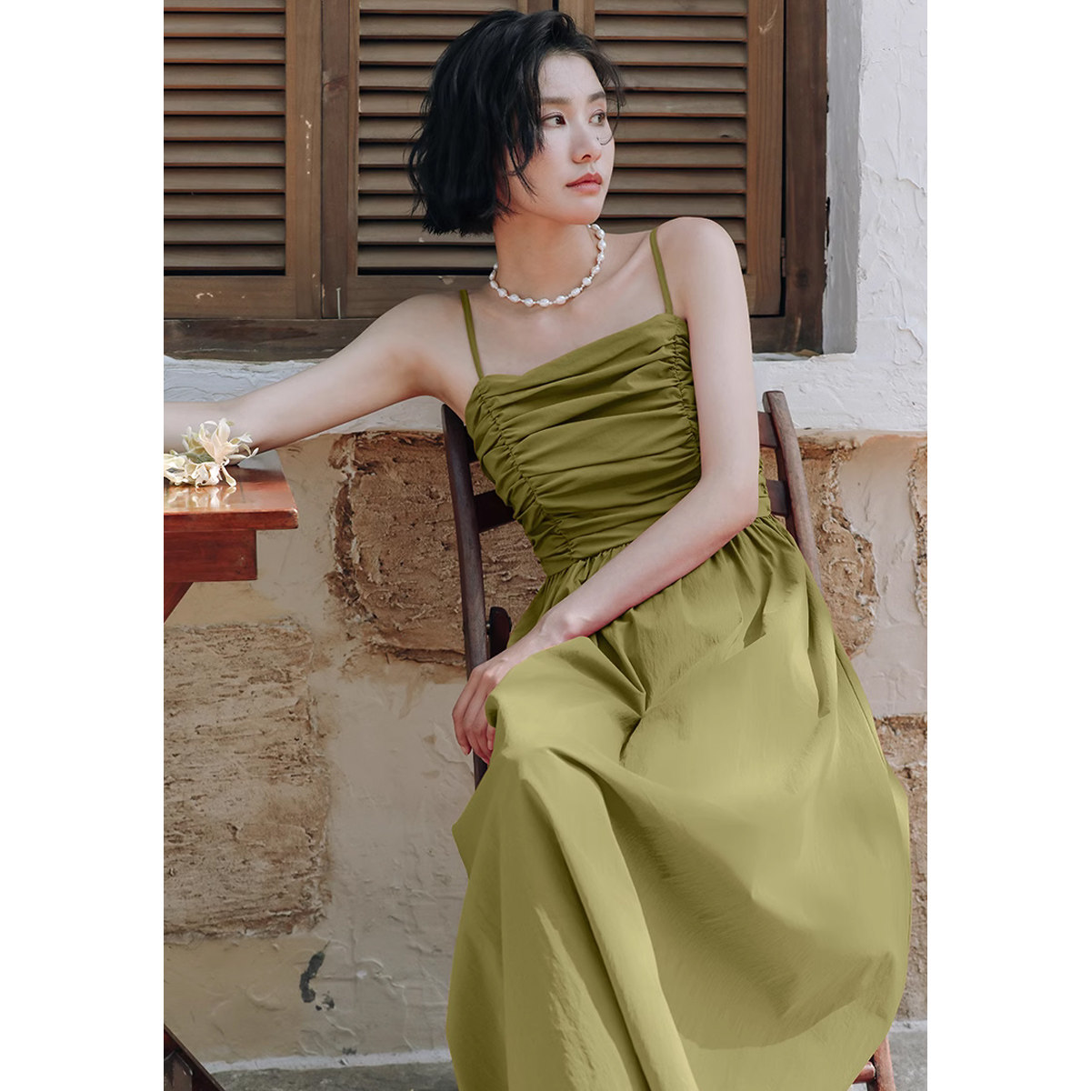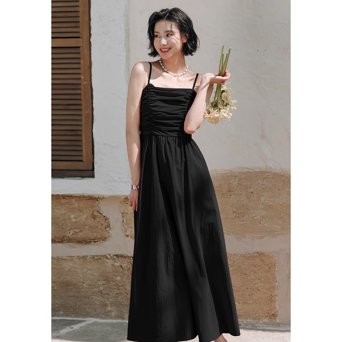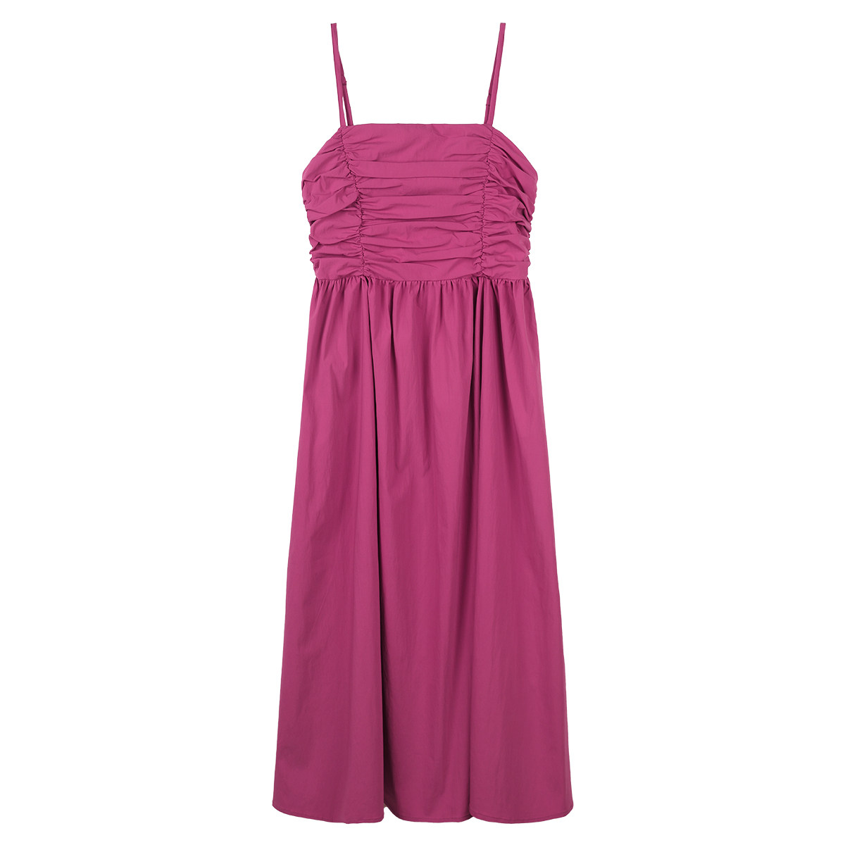 弥古玫红色连衣裙女高级感夏季吊带裙修身法式度假长裙海边沙滩裙