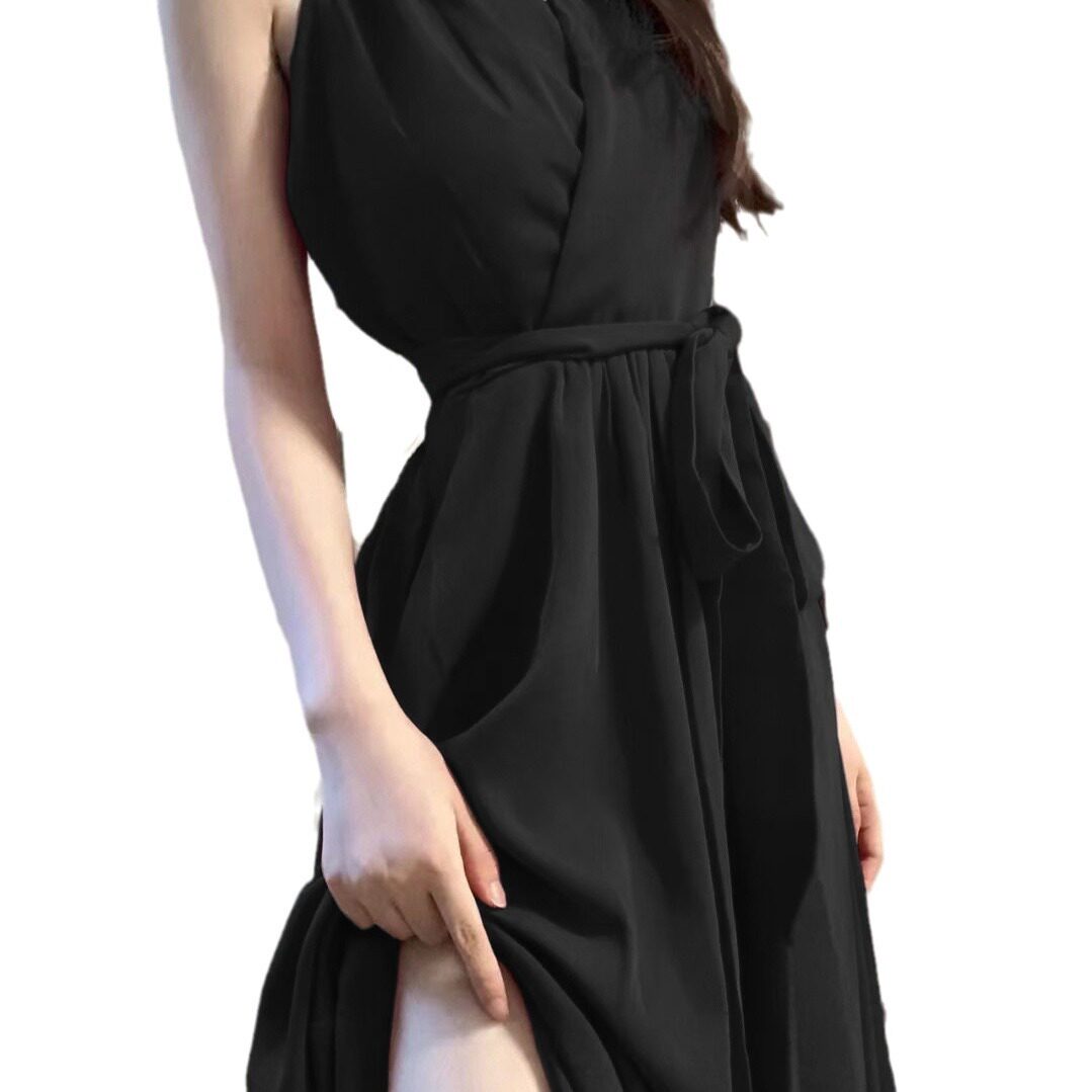 大码夏季挂脖伪娘连衣裙气质纯欲性感红色御姐绑带修身男娘长裙