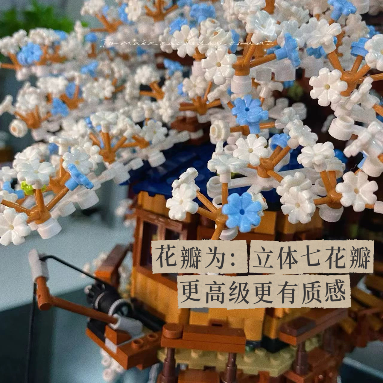 新款樱花树屋积木花束拼图成人高难度女生生日礼物益智拼装玩具