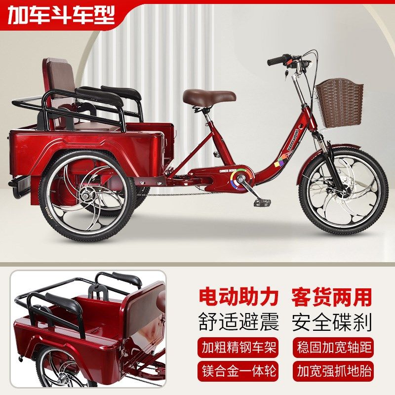 老年人电动脚蹬两用三轮车成人自行车老人助力代步车折叠单车轻便