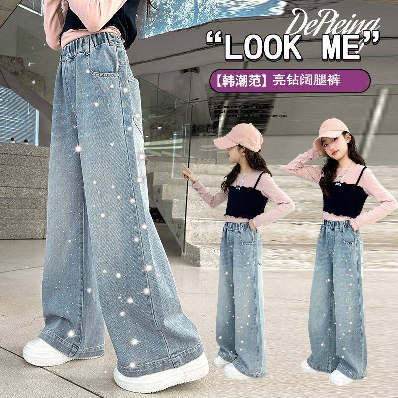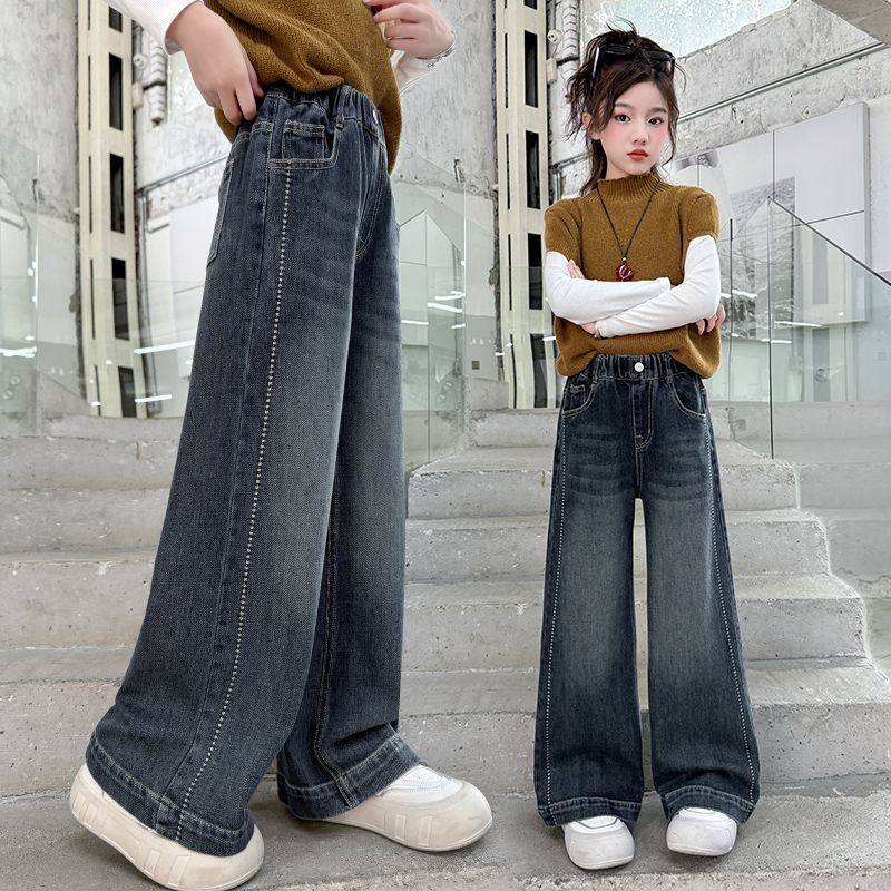 女童裤子春秋款2026新款儿童洋气休闲牛仔裤中大童百搭女孩阔腿裤