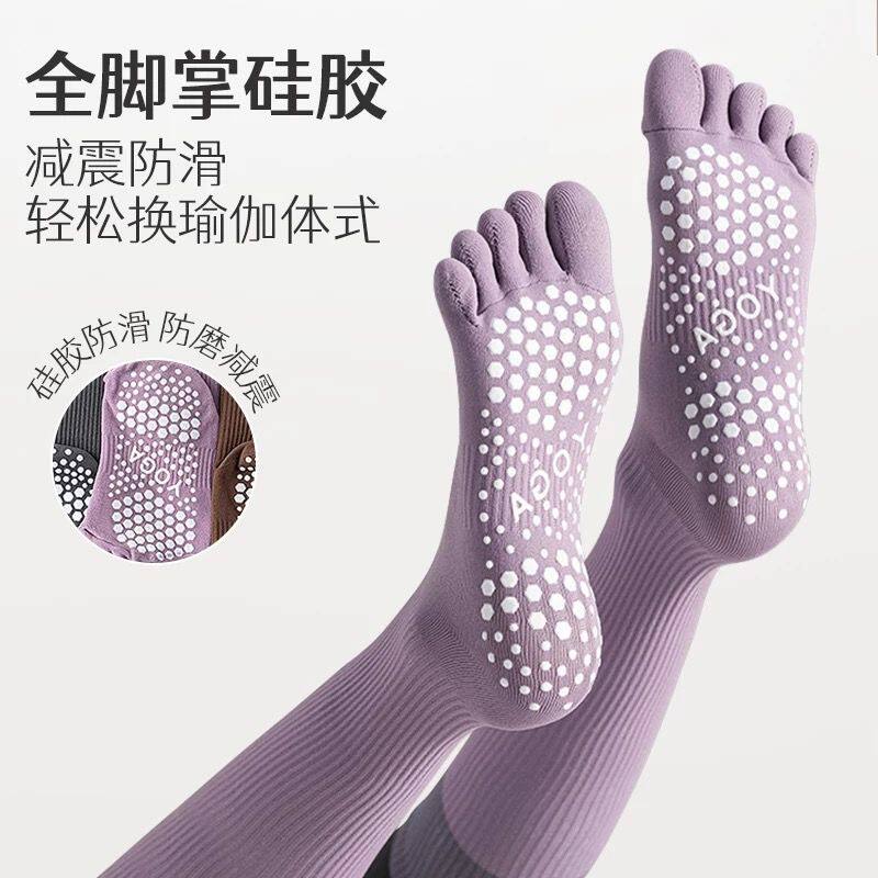 普拉提防滑袜专业级小腿五指袜瑜伽防滑肌能压缩袜运动跑步长筒袜