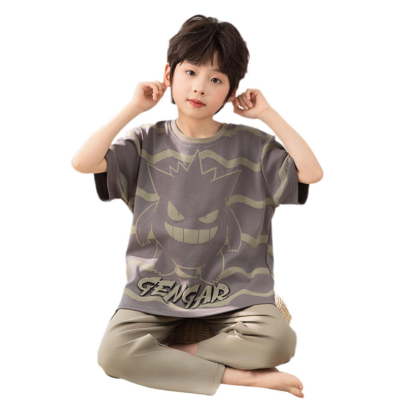 宝可梦夏装男童睡衣短袖长裤纯棉中大童套装儿童青少年空调家居服