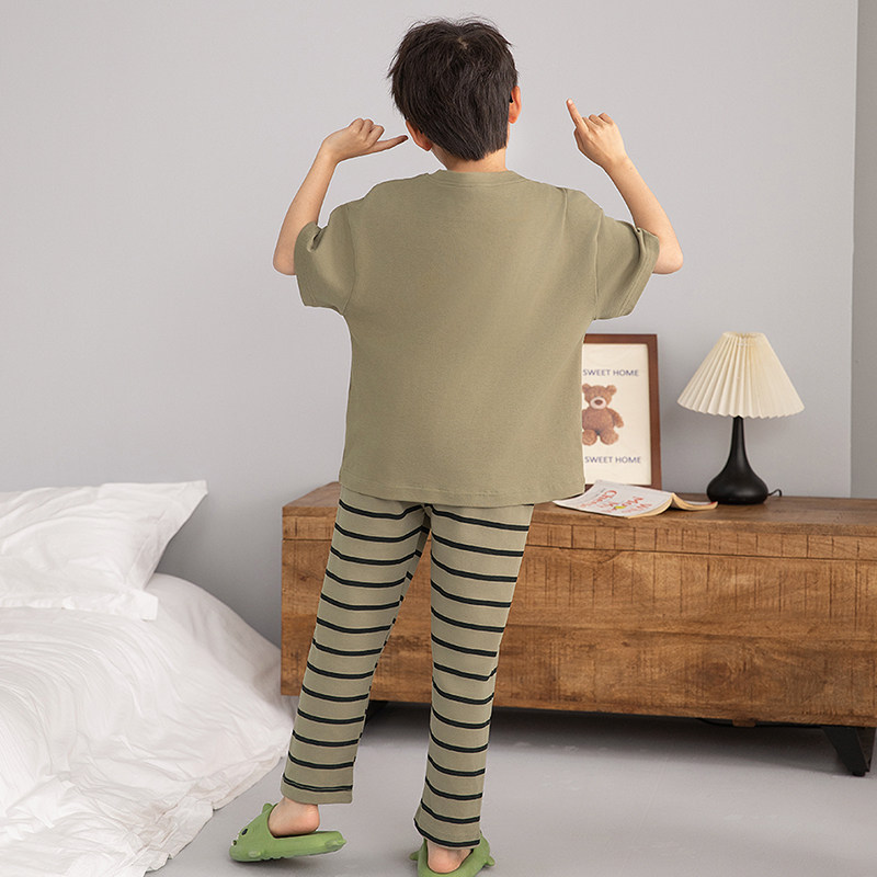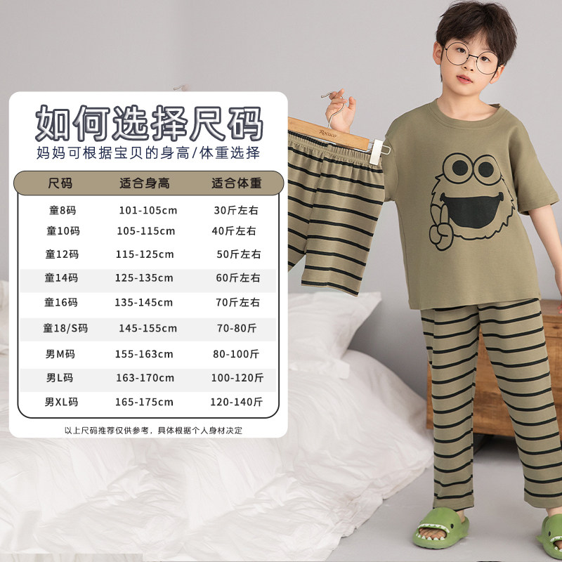 男童睡衣夏季纯棉短袖长裤三件套儿童男孩中大童青少年夏天家居服