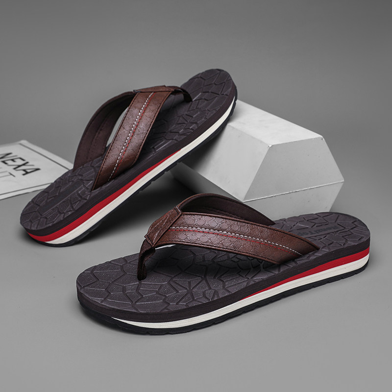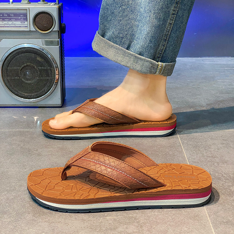 外贸原单日本皮面人字拖鞋男休闲外穿厚底增高防臭轻便防滑凉拖鞋