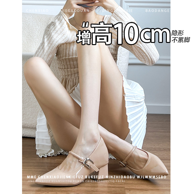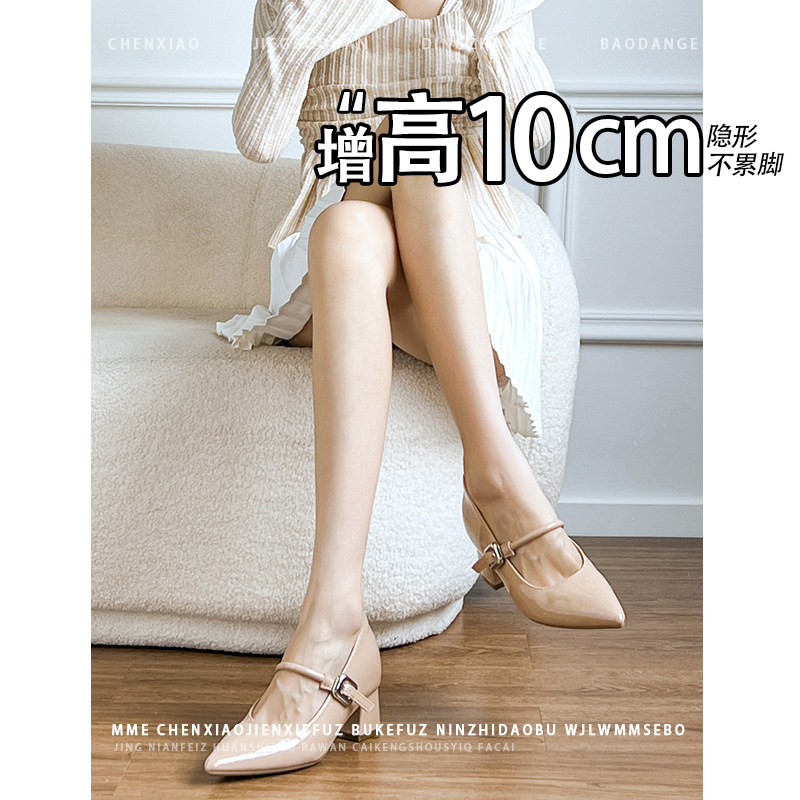 不累脚!隐形内增高10CM法式尖头玛丽珍2026新款小个子粗跟单鞋女