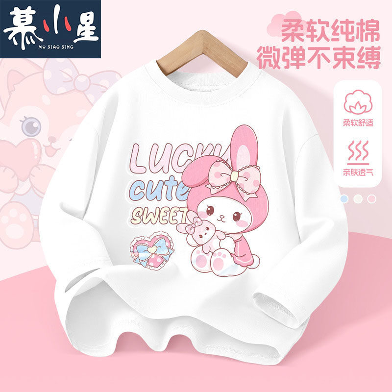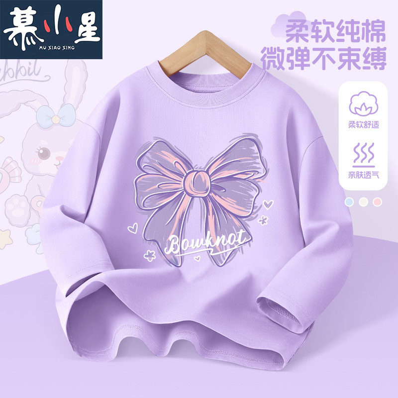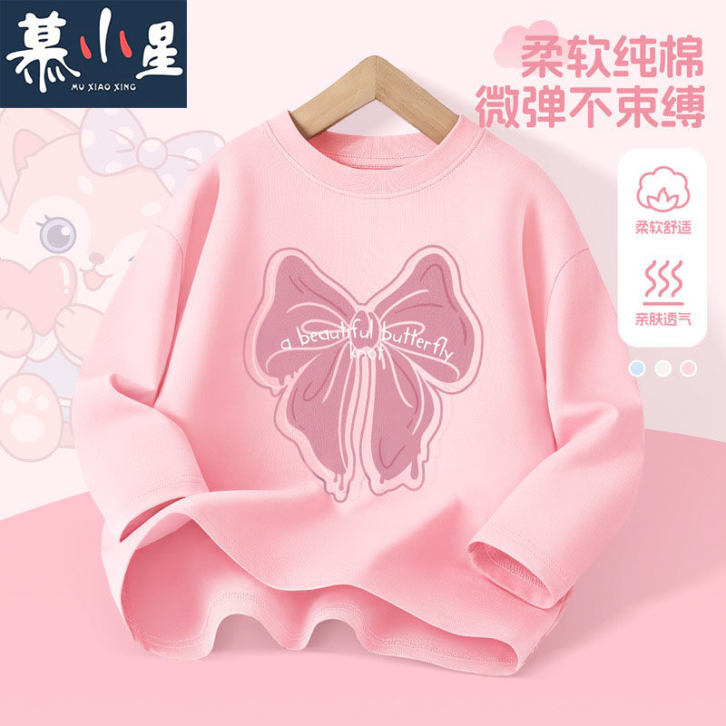 女童春秋季100%纯棉长袖薄款打底衫儿童休闲圆领春装时尚韩版上衣