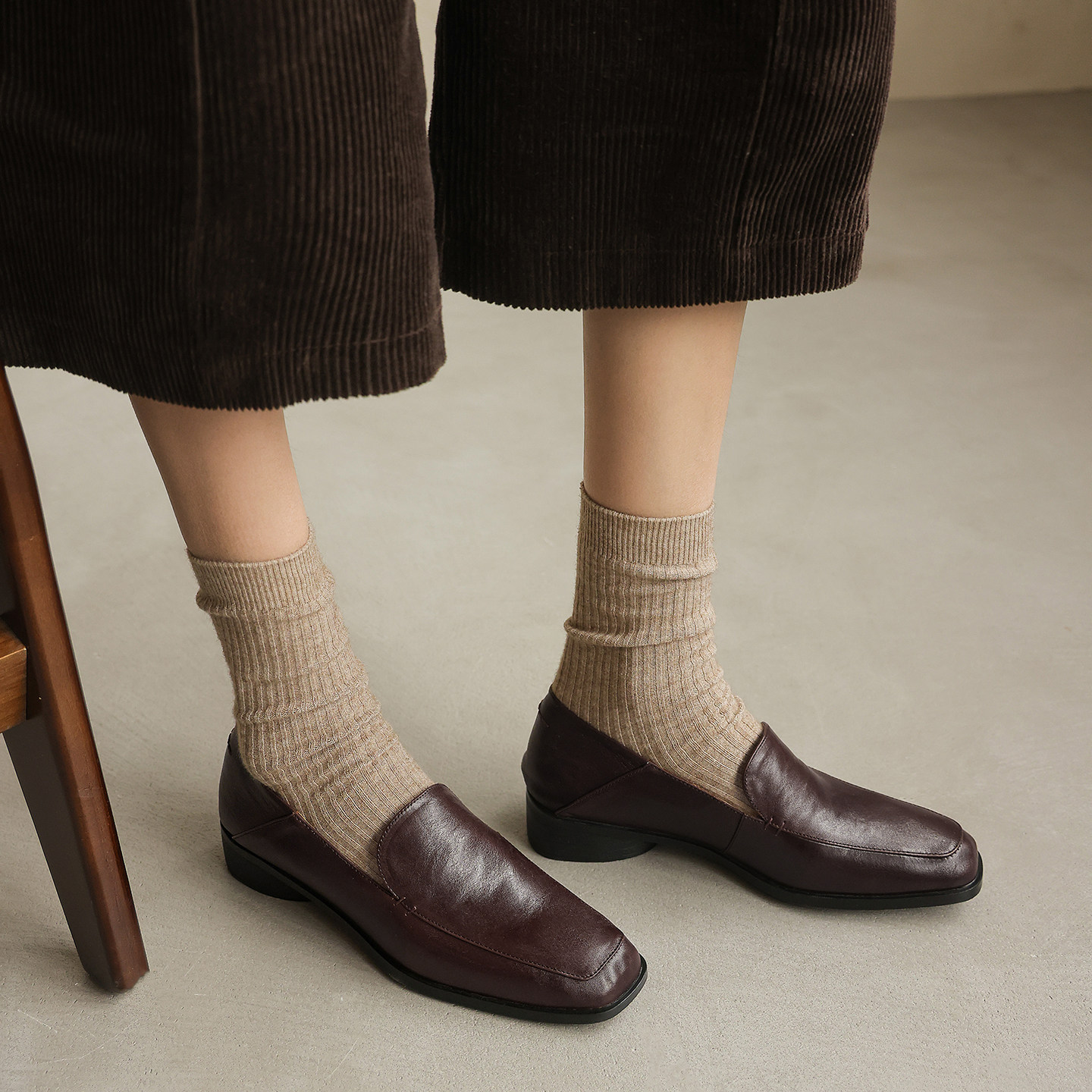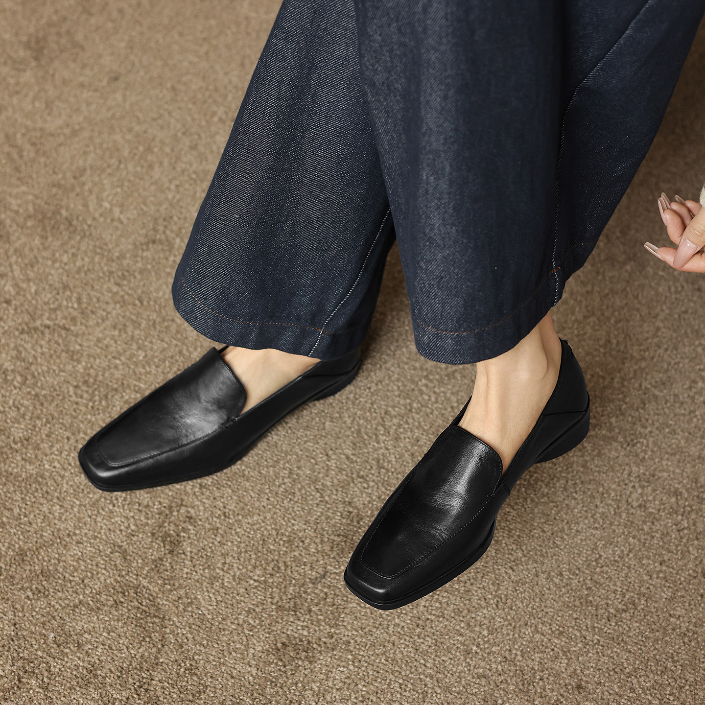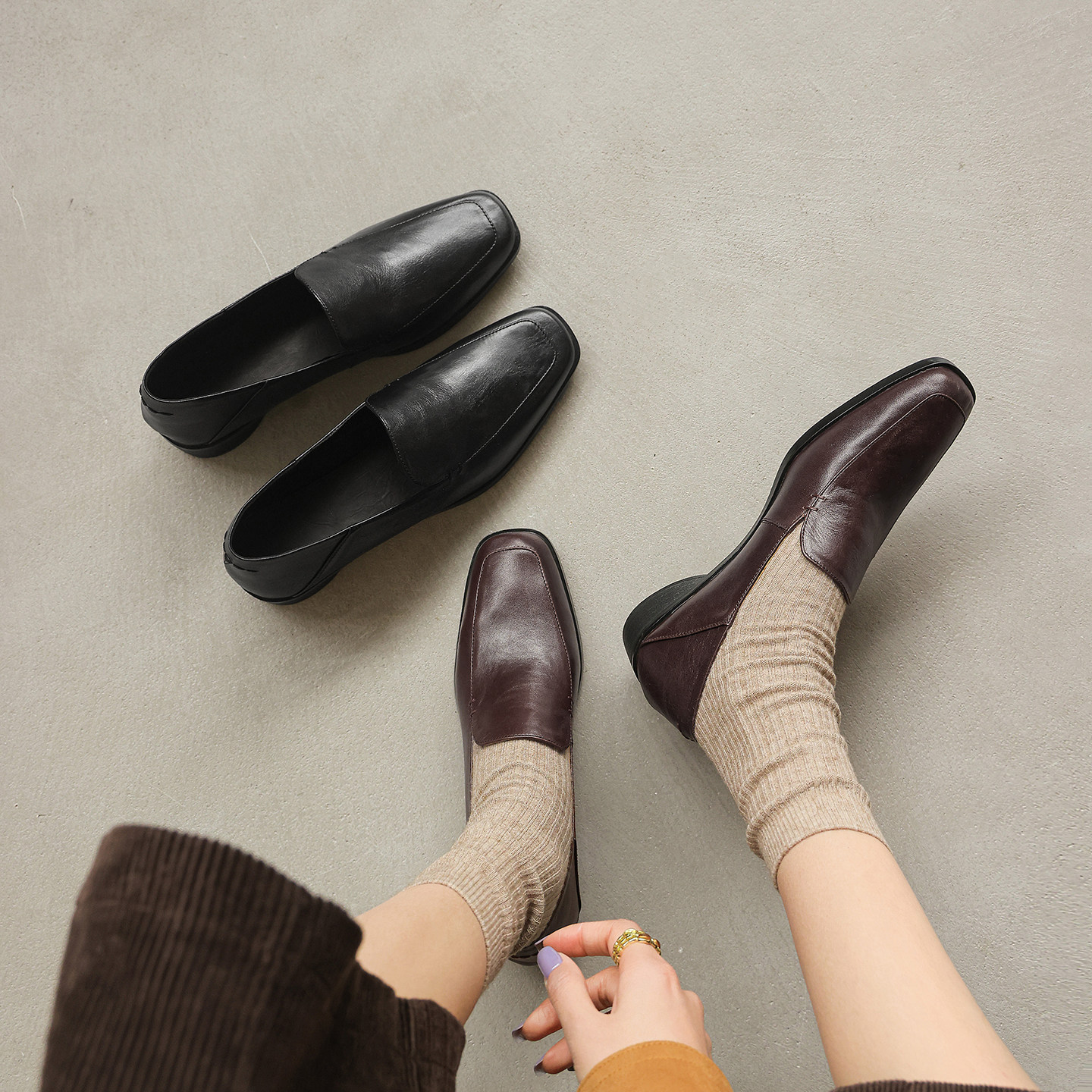 英伦风方头真皮乐福鞋女2026春季新款复古低跟一脚蹬通勤百搭单鞋