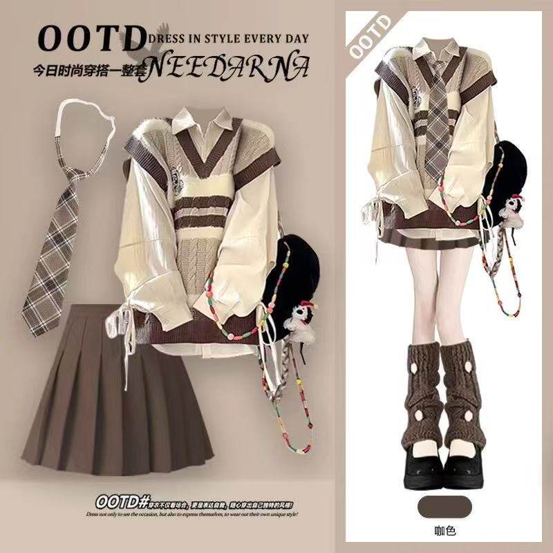 女童春秋毛衣套装2026新款12岁13中大童15学生洋气韩版小个子jk裙