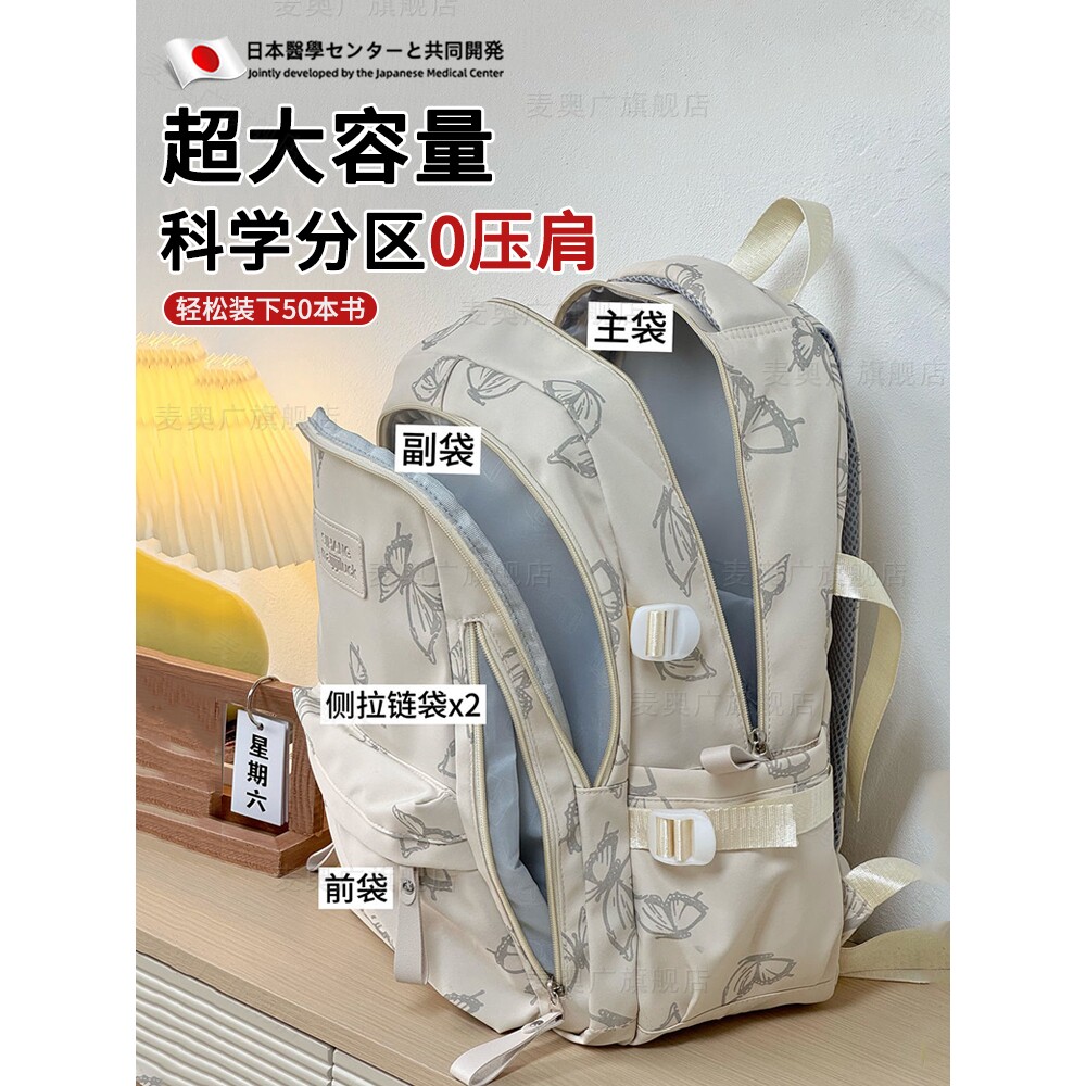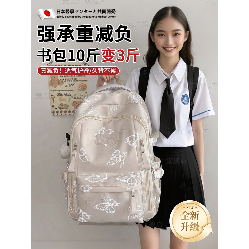 日系书包初中女生大容量高颜值小众简约双肩包高中学生休闲ins风