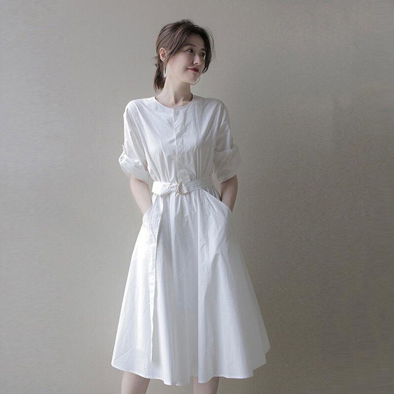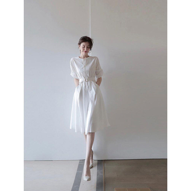 白色衬衫连衣裙子女士装夏季新款小个子轻奢高级感气质中长裙
