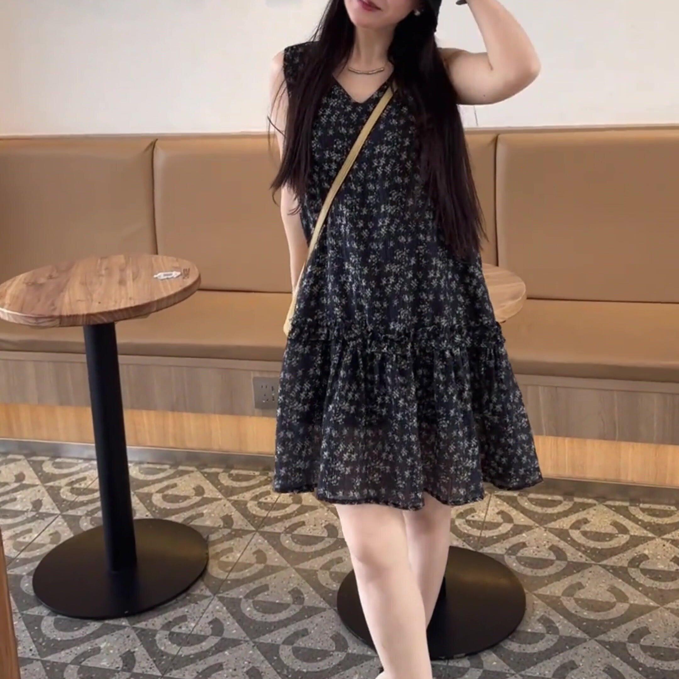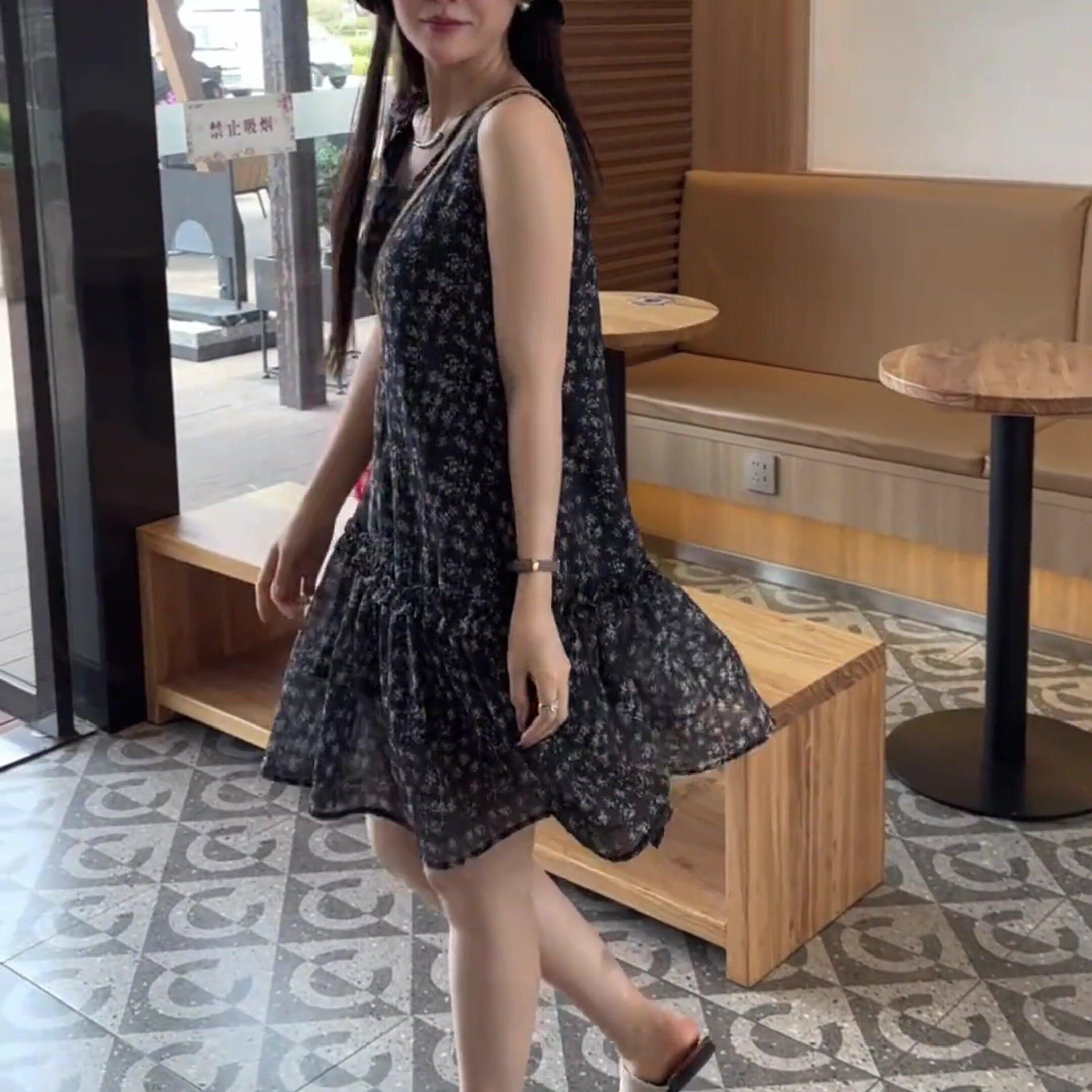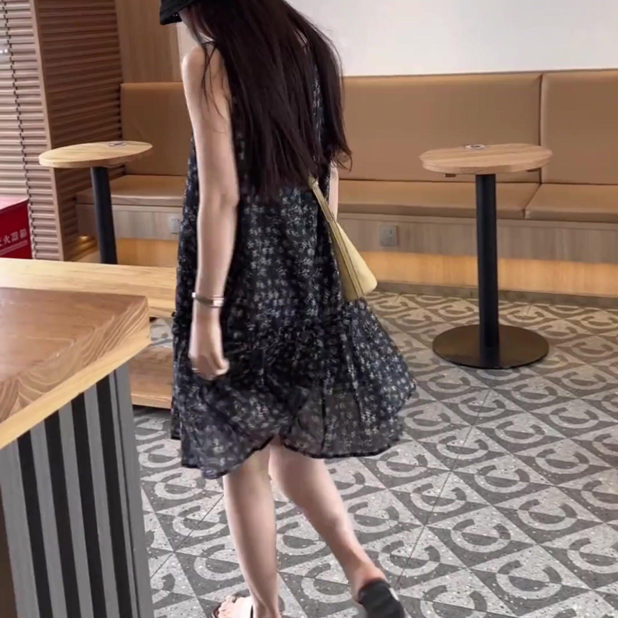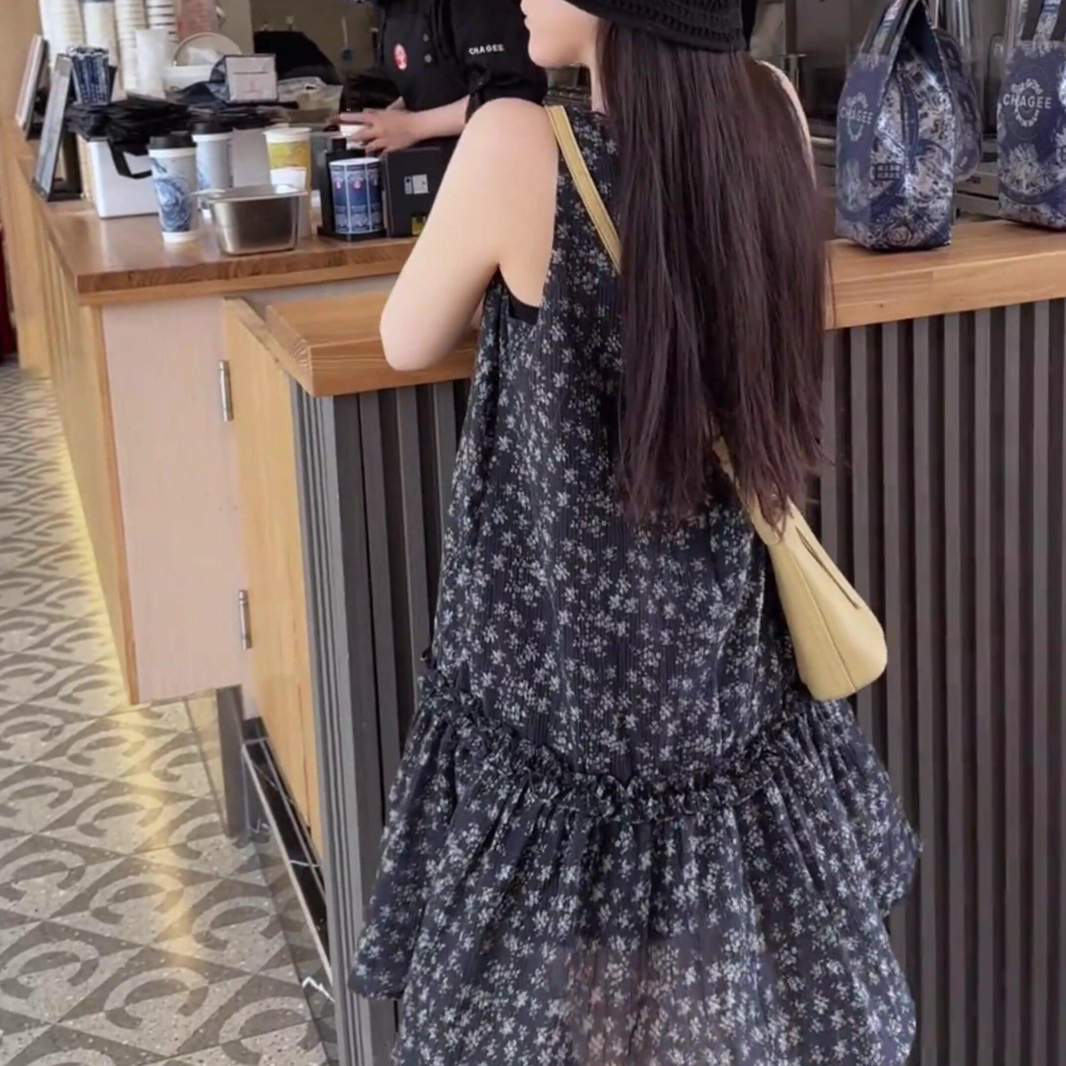 2026春夏款背心裙小个子高级感中长款度假风无袖碎花裙百搭连衣裙