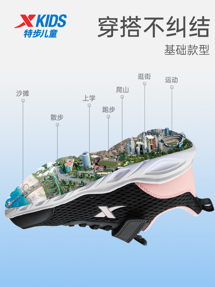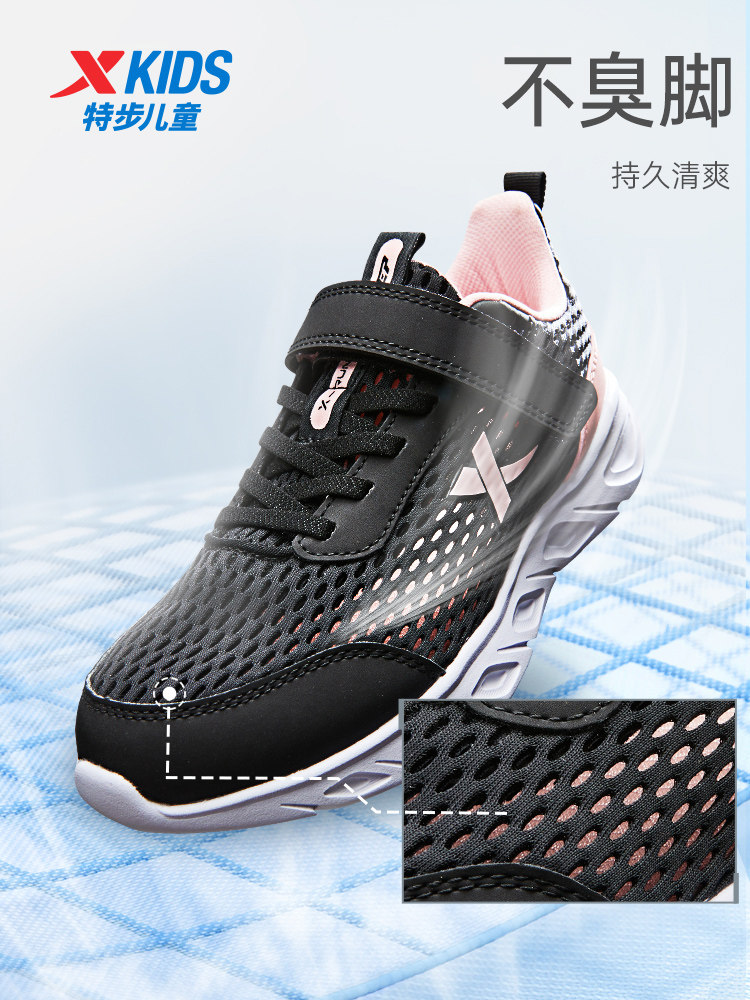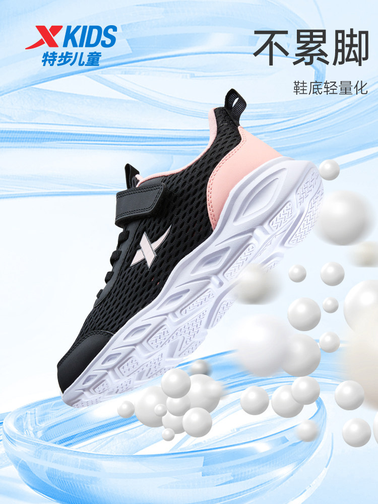 特步童鞋夏季女童运动鞋休闲儿童鞋跑步鞋女孩鞋子网面透气跑鞋