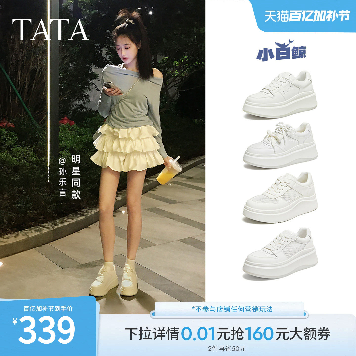 孙乐言同款TATA他她女鞋小白鲸板鞋厚底百搭鞋子增高休闲款学生鞋