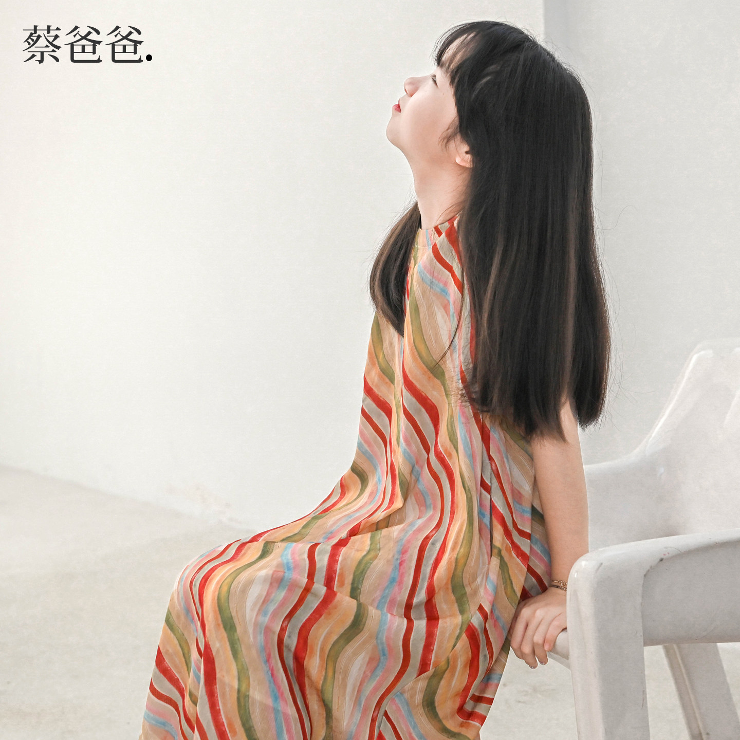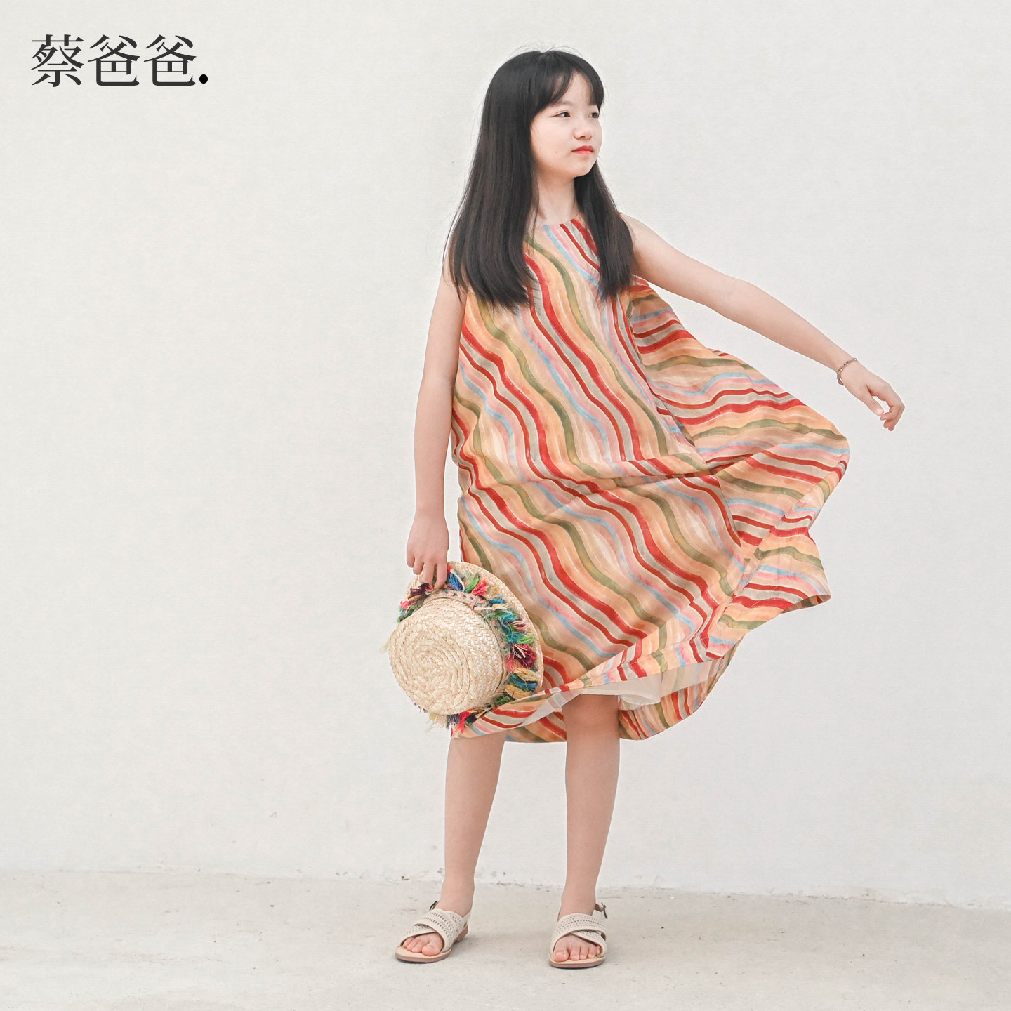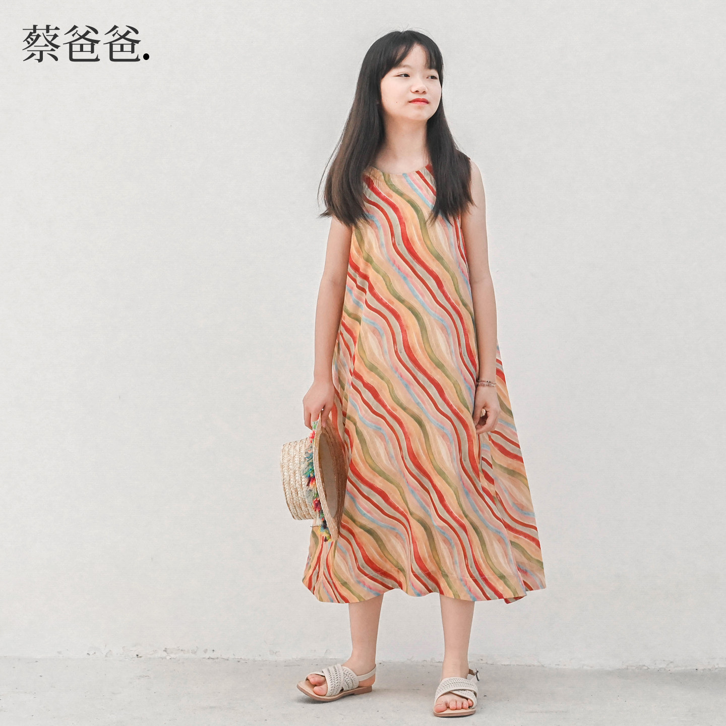 蔡爸爸童装个性创意彩虹条纹无袖连衣裙 女童夏薄款度假风裙子195