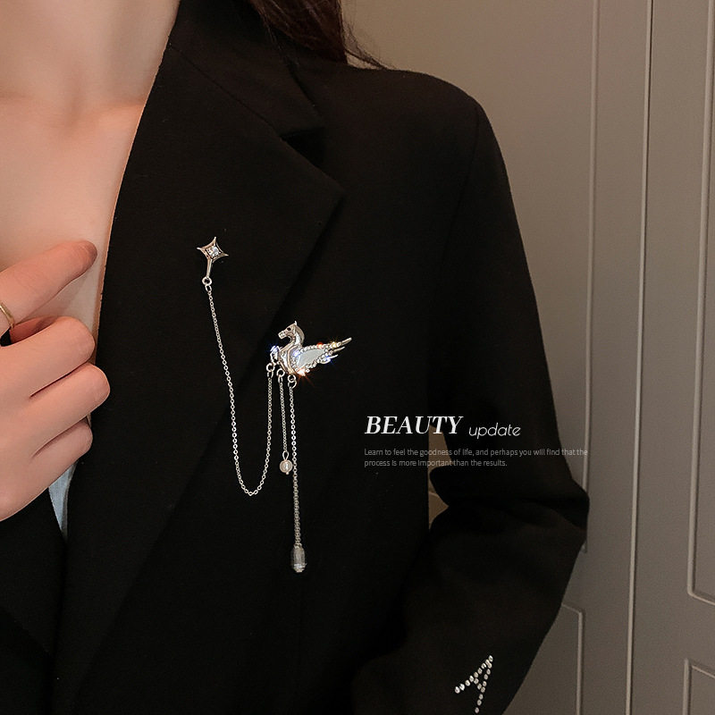 镶钻飞马四芒星流苏胸针韩国冷淡风金属感别针气质衣服配饰品