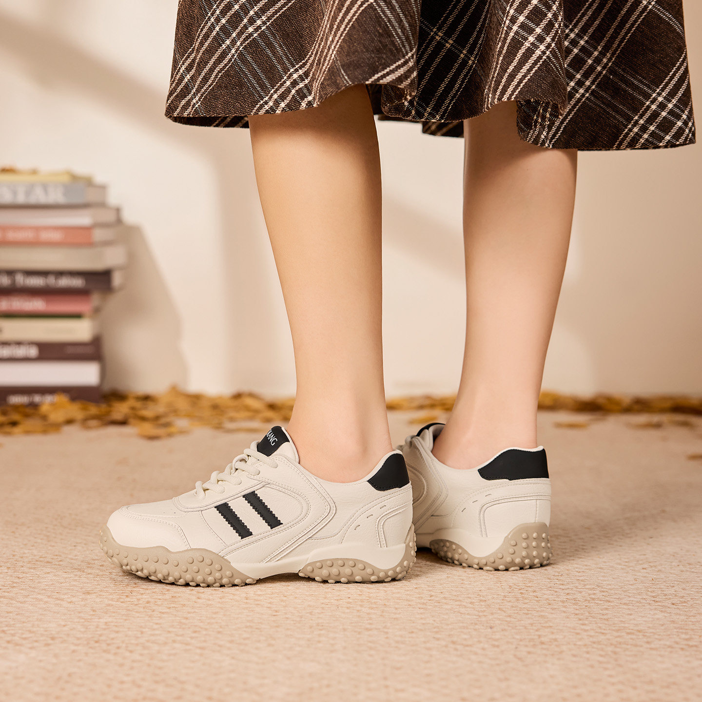 奥康 女鞋2025秋季新款内增高德训鞋女厚底轻便芭蕾风休闲阿甘鞋