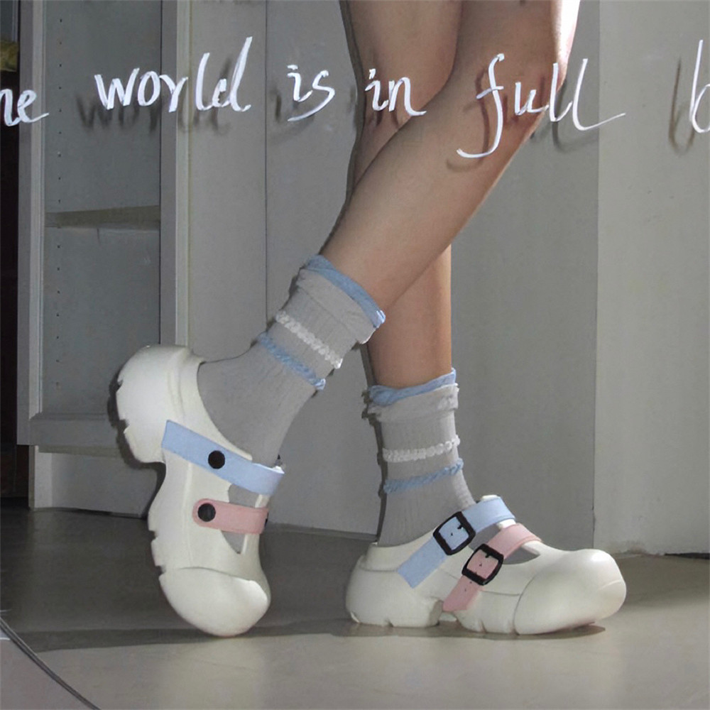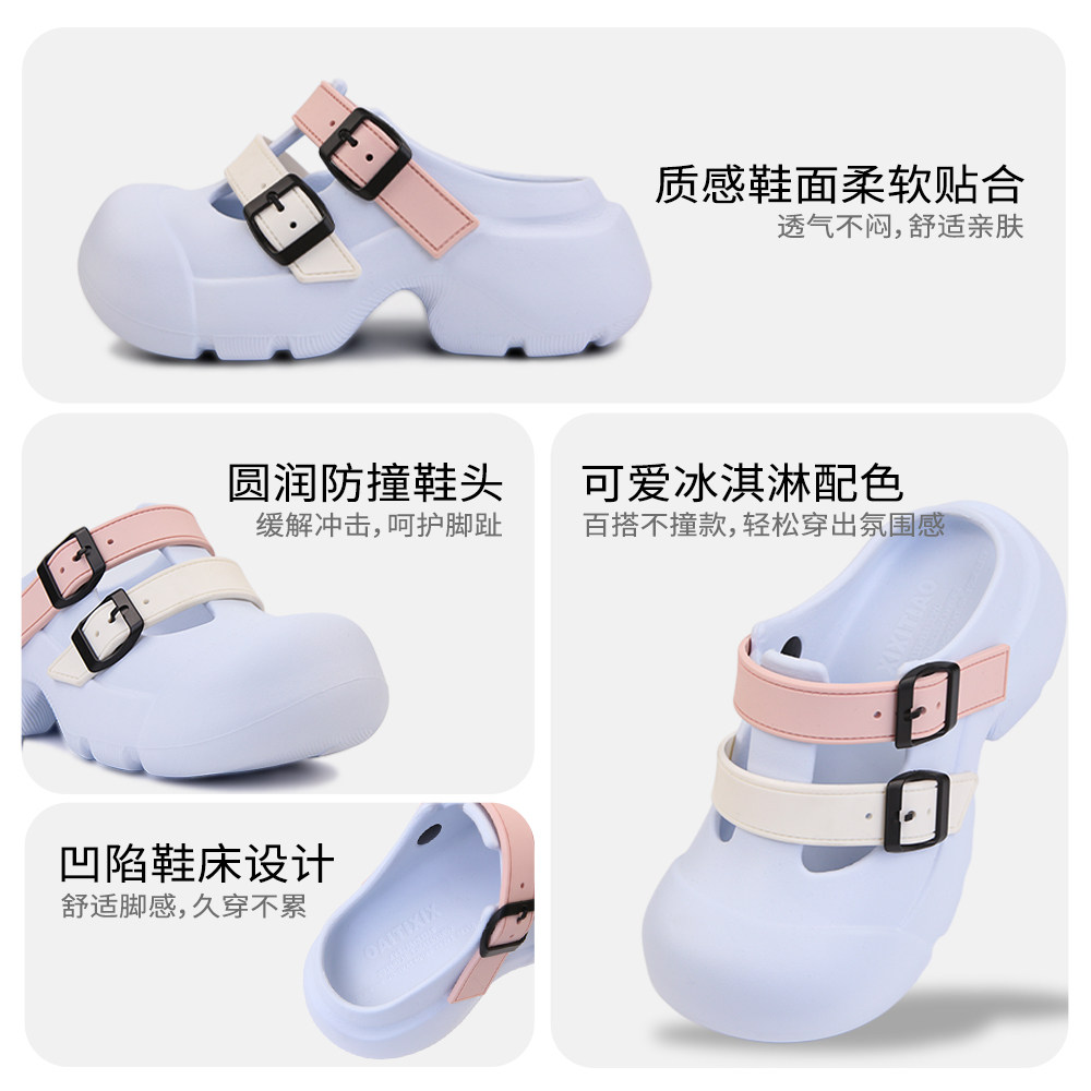 细细条 冰淇淋凉鞋少女心夏天可爱增高厚底多巴胺沙滩lo包头拖鞋