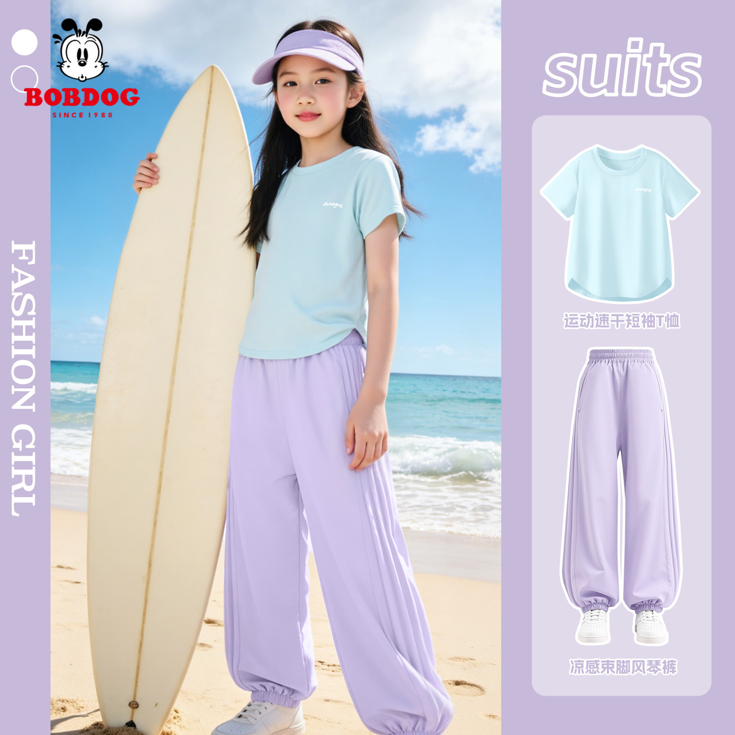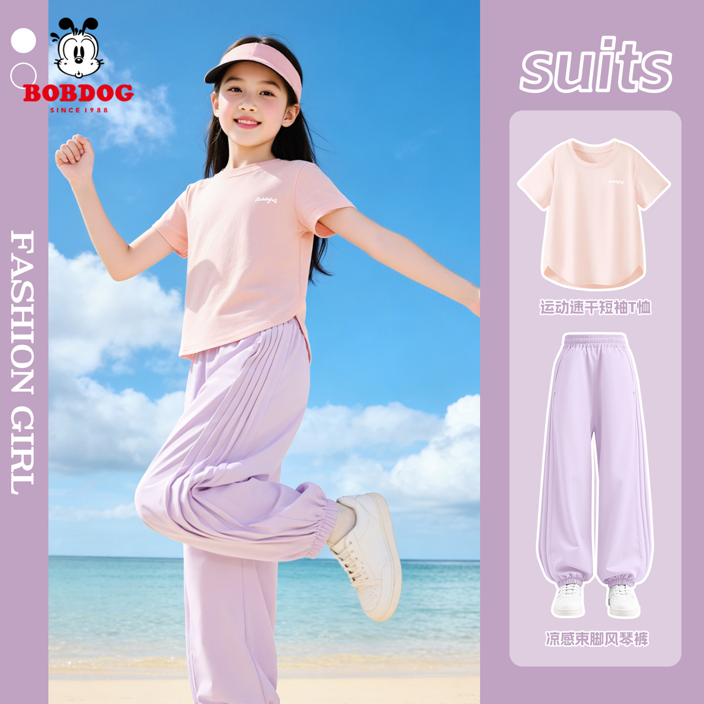 巴布豆童装女童短袖t恤2026新款中大童夏运动季速干套装儿童裤子