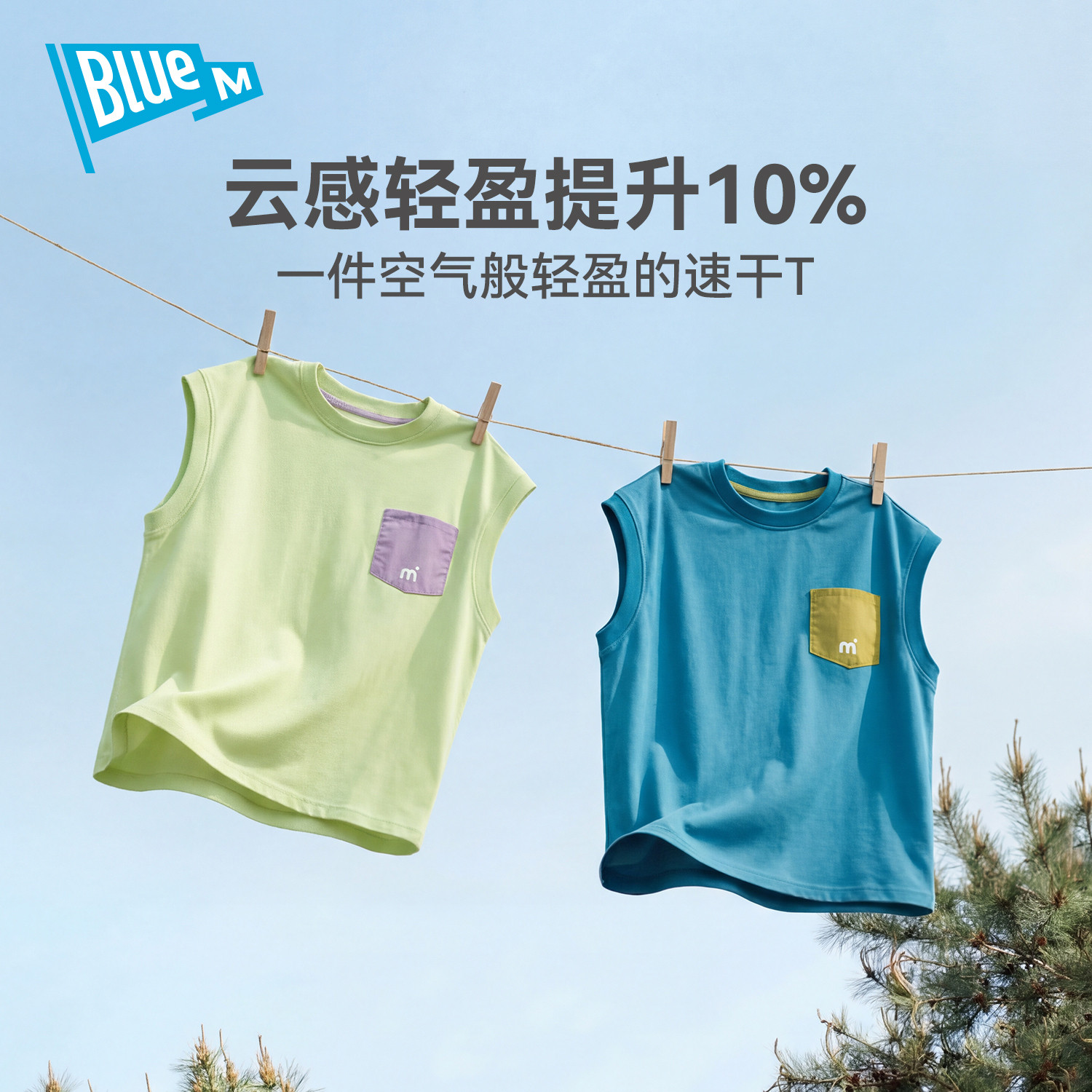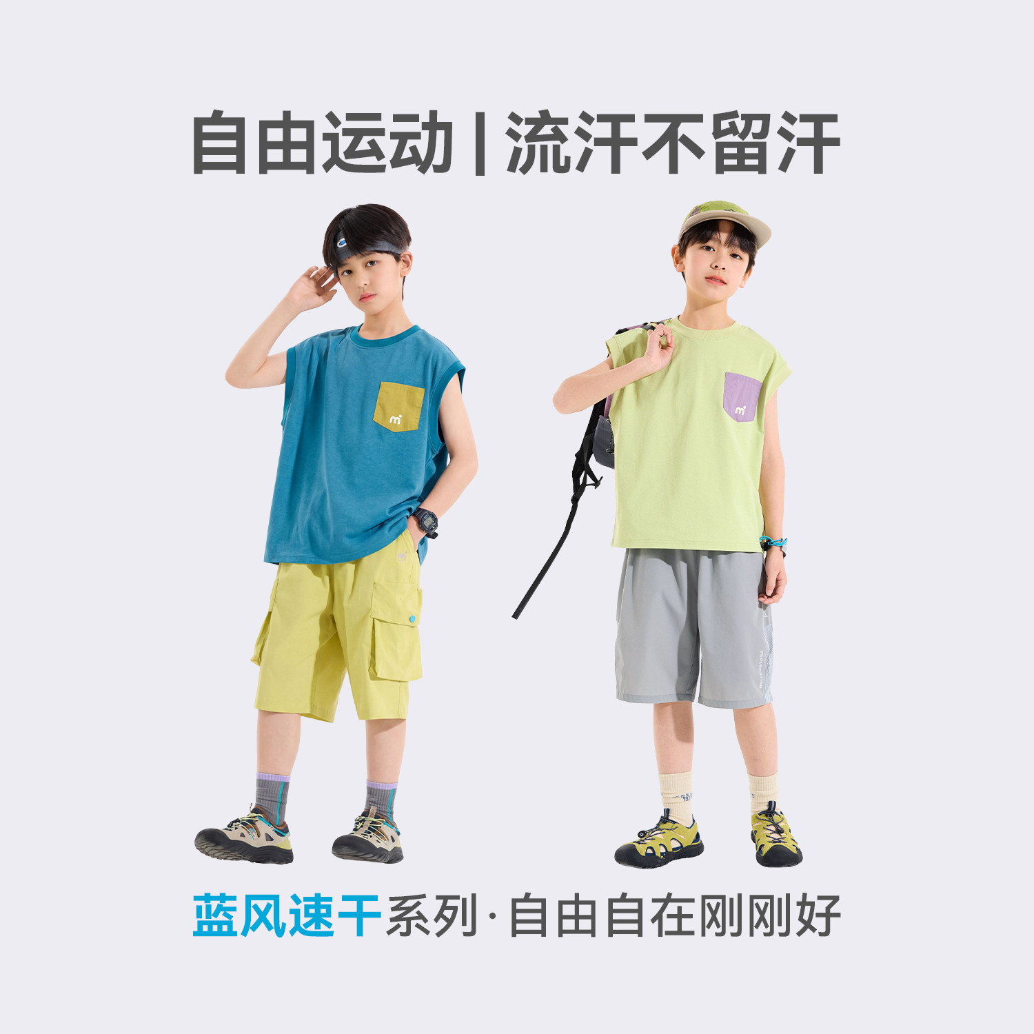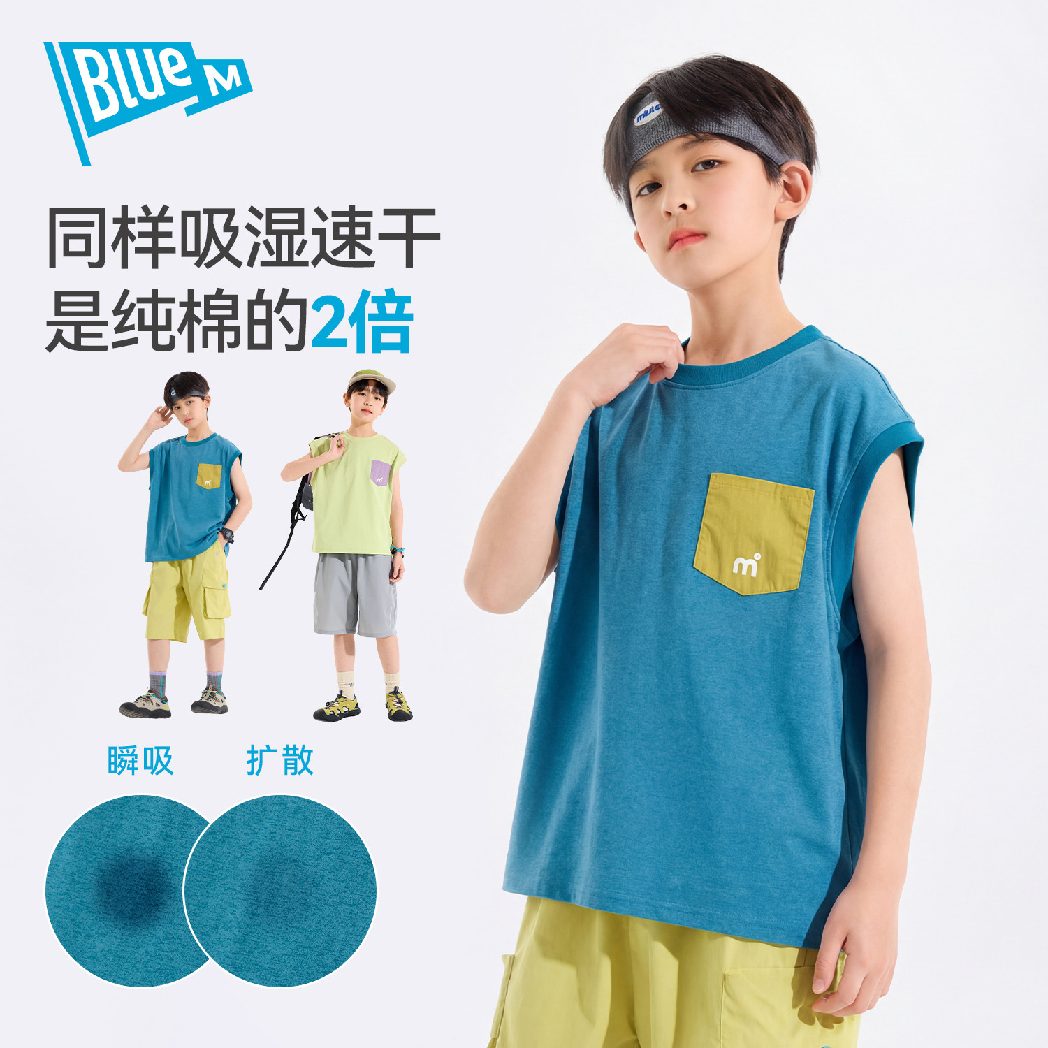 Bluem男童背心短袖T恤儿童速干衣半袖夏季男孩上衣运动青少年童装