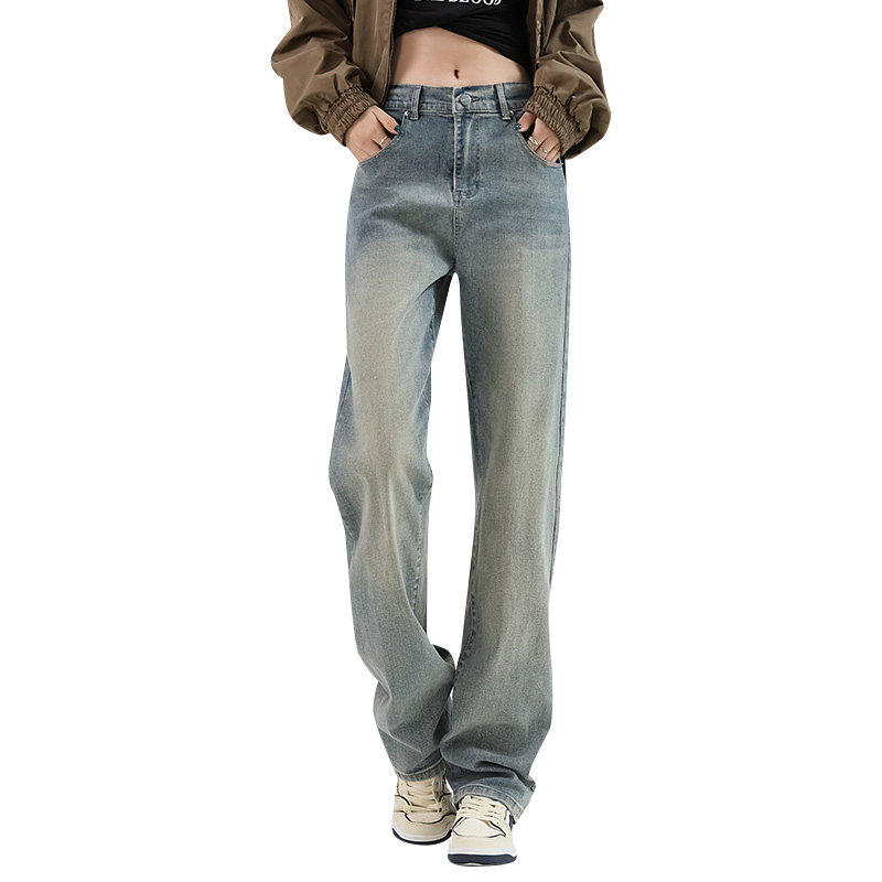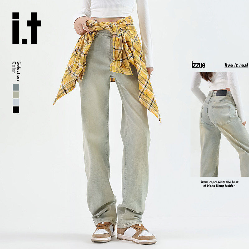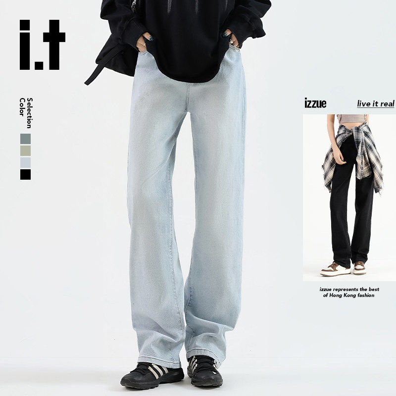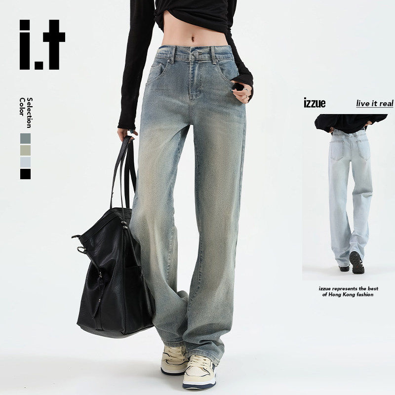 it: izzue官方流行高街美式女款春秋季直筒阔腿宽松牛仔裤子女2M